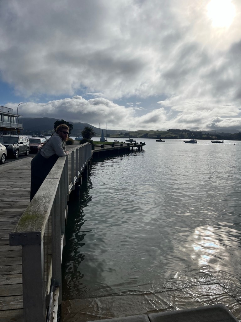 When we got to the top of the hill at Mangonui I was happy to see the downhill. We carried on for a while and Rowans bike was getting worse. In the end we stopped and realised we have done all the scenic part. From here on it is just going to be asshole drivers as we head inland. Because we had been offered a ride to Paihia we decided stuff this. Tomorrow is Saturday, the traffic will be worse. The bike is not happy, we won’t be happy let’s get out of here. So we hop back on our bikes to find a good place to hitch. Well lucky for us it isn’t far. We put our bikes in the shade and go back to the bridge to put a thumb out. We had decided that one of us stay with the bikes one of us get the car. If it’s a bit of a skody fella Rowan will go haha. So I just put my thumb up and Rowan says “let’s take bets on how long it will take us, I reckon 30min.” I reply, “I reckon 5 seconds.” Literally the 5th car pulls over. Crack up!