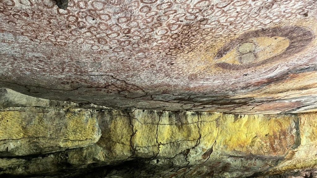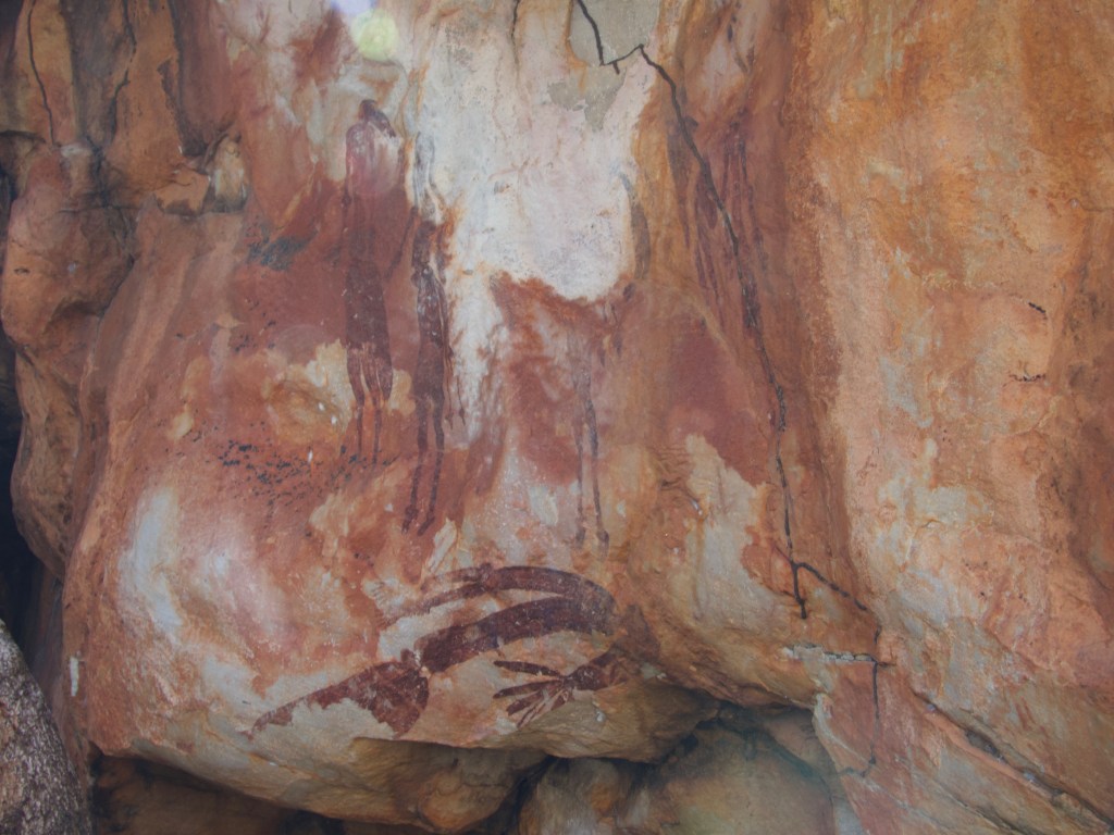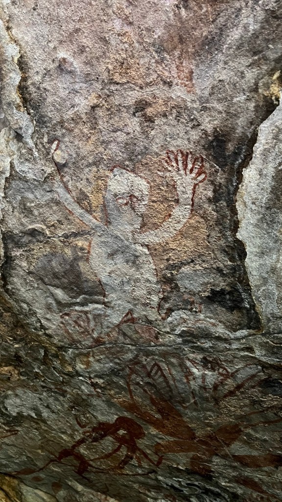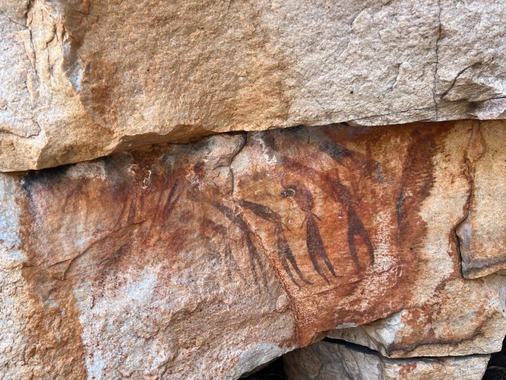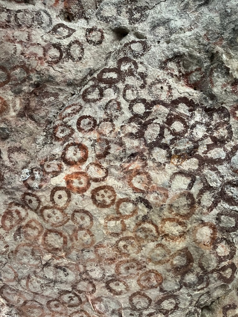We arrive at our destination and make a beeline to the rock art. It took about an hour to get there, it was incredibly hot. I was thankful to be in the cave and in the shade by the time we got there. There was just no shelter from the heat.