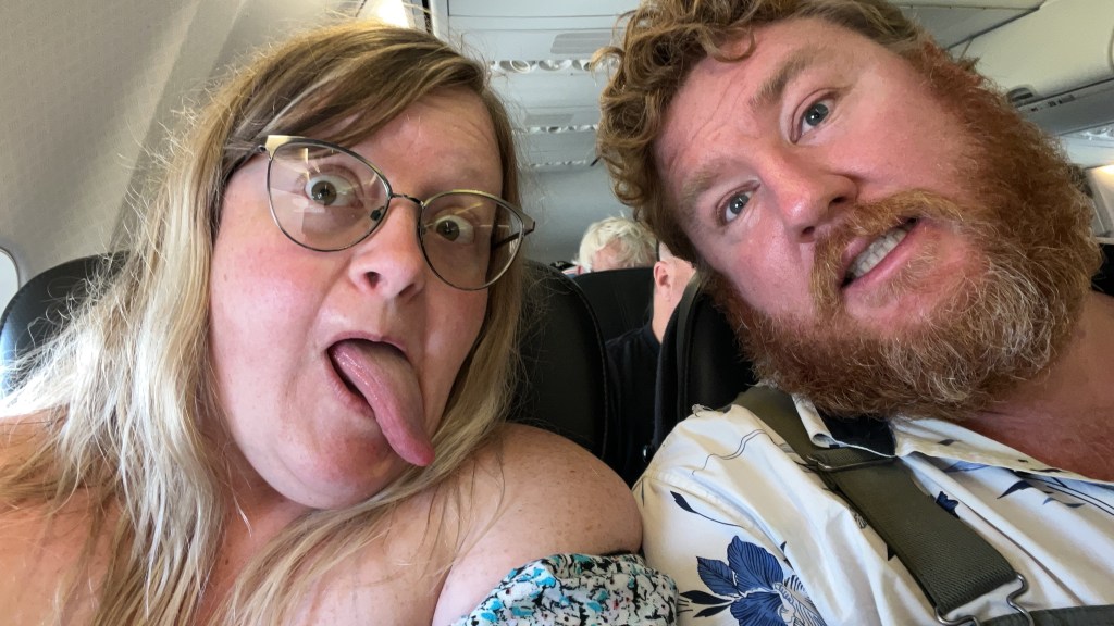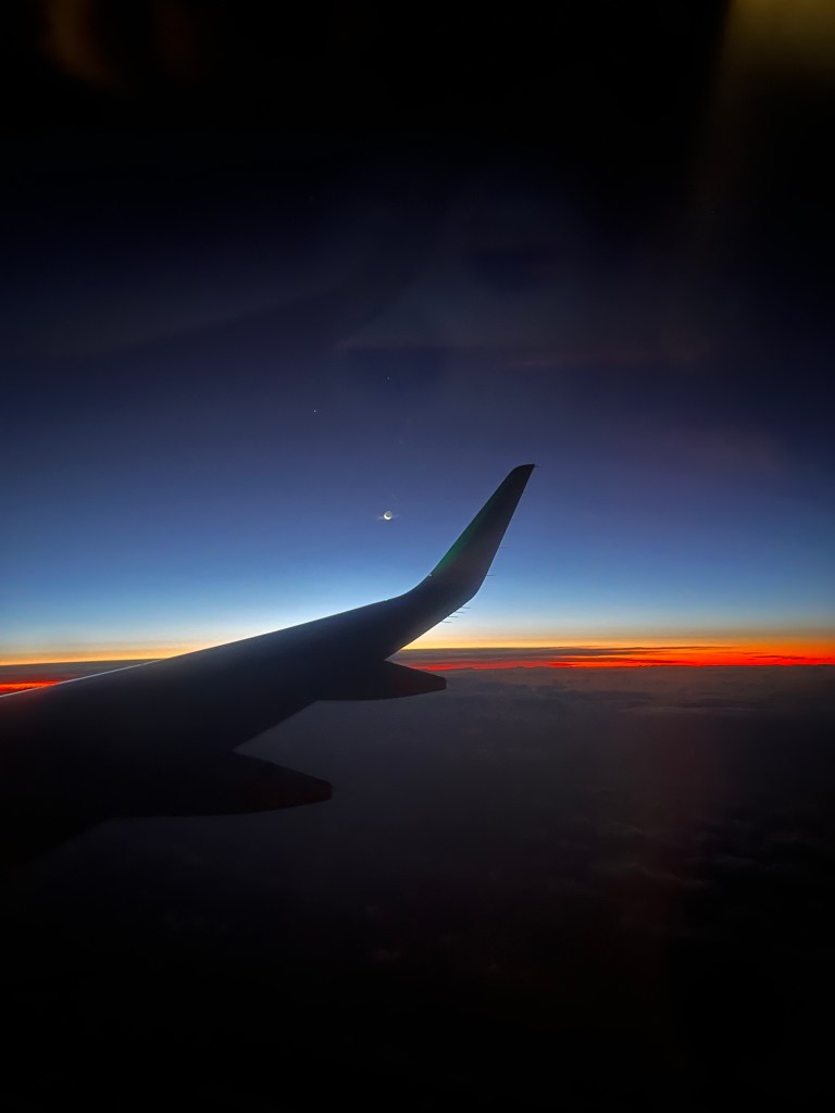 We asked for window seats and end up in business class. You don’t ask, you don’t get. I am happy sitting up there with more room than normal. This isn’t a big business class just the small upgrade you get. The view out the window is fantastic. I am a bit tired luckily this is our last flight today.