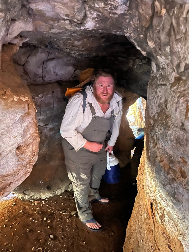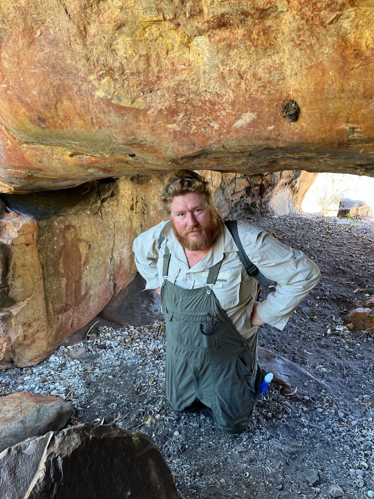On the way into the cave we got mobbed by green ants, which bite. I swear everything bites in Australia. In the cave we’re some interesting images. Tubs found the spearhead which can’t be from the people around here because they never knapped their spears they just grinded them.