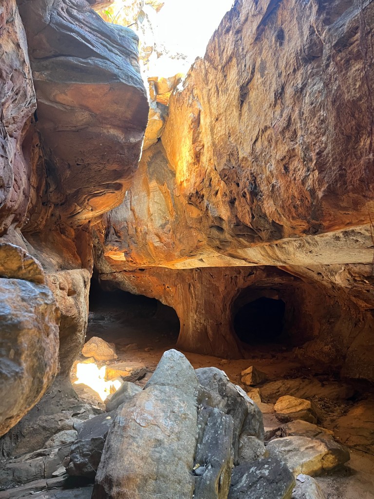 The day starts with an adventure even before coffee! Rowan told me he had taken the drone through an arch, he thought he was recording but he wasn’t. I asked if he would do it again, he agreed. Well of course he lost signal and the drone tried to come back to base (which we set it to rise 50m and come back) but hit its noggin in the arch. So we ended up on a near hour walk to retrieve it haha. It was actually great fun. It turns out it is not an arch it is just the way the rocks are laid that it looked like one. I did get ants in my pants (literally) and the nasty buggers bite!