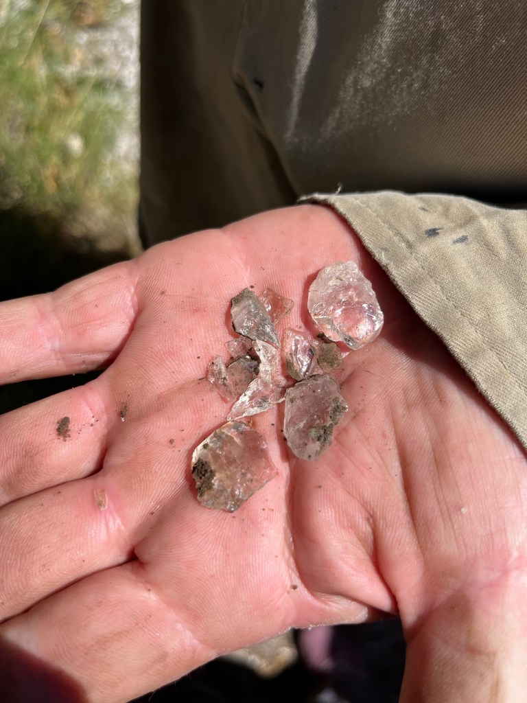 The walk continued from there, we must have gone to four or five different areas. There was also evidence of a kitchen, trenches worn from thousands of years of spear sharpening and crystal shards from spears made to kill humans.