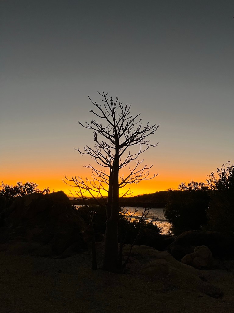 5am start, I got dressed and gave Rowan his pills to get him up. Last night I had a good sleep, it wasn’t too hot and the beds are extremely comfortable. Down at the camp living/kitchen area we watched the moon set. There was a good colour to the sky from the sunrise. Unfortunately the sun rises behind the camp so you can’t fully see it come up.