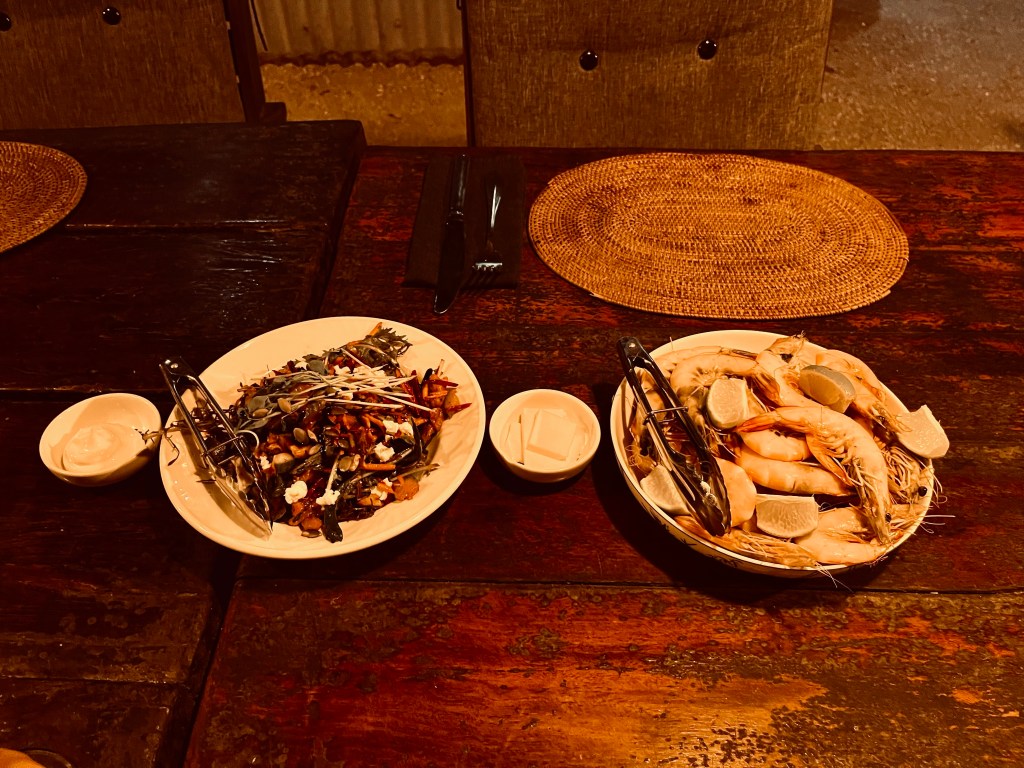 Off to dinner at a place called Cade. It is quite a late dinner compared to normal and Kaye doesn’t join us, she would like to rest. We go upstairs and we end up with a really funny waiter. Tom and I start a banter straight away, he apologises for interrupting and I make him go onto his knees to take our order. Before we know it we have him bowing constantly while he takes our order. For the rest of the evening we had a bowing waiter. We were in hysterics, the food was delicious and we were well entertained.