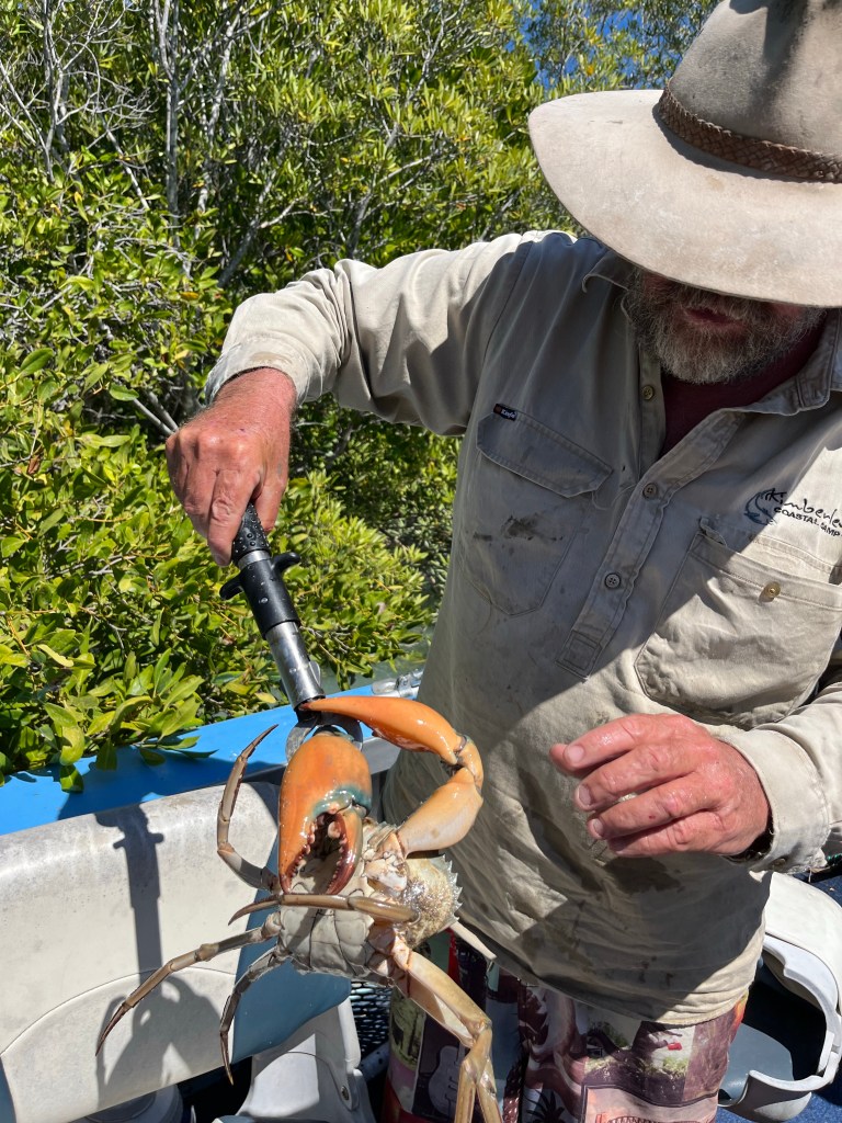 I am awake at 4am, I beat my alarm. Today we are leaving the Kimberley Coastal Camp. But before we do, we fish! We pack our bags and head out to the main camp area. A coffee and a small amount of time and we are walking out to the point to reach the dinghy. The tide is way out and the easiest way to get to it is along the rocky point. Tubs kills a brown snake, two snakes I have seen in the wild now.