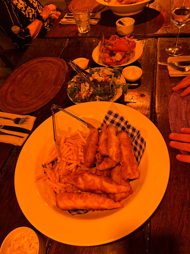 We had a lovely Moroccan style dinner with the fresh fingermark fish they caught earlier.