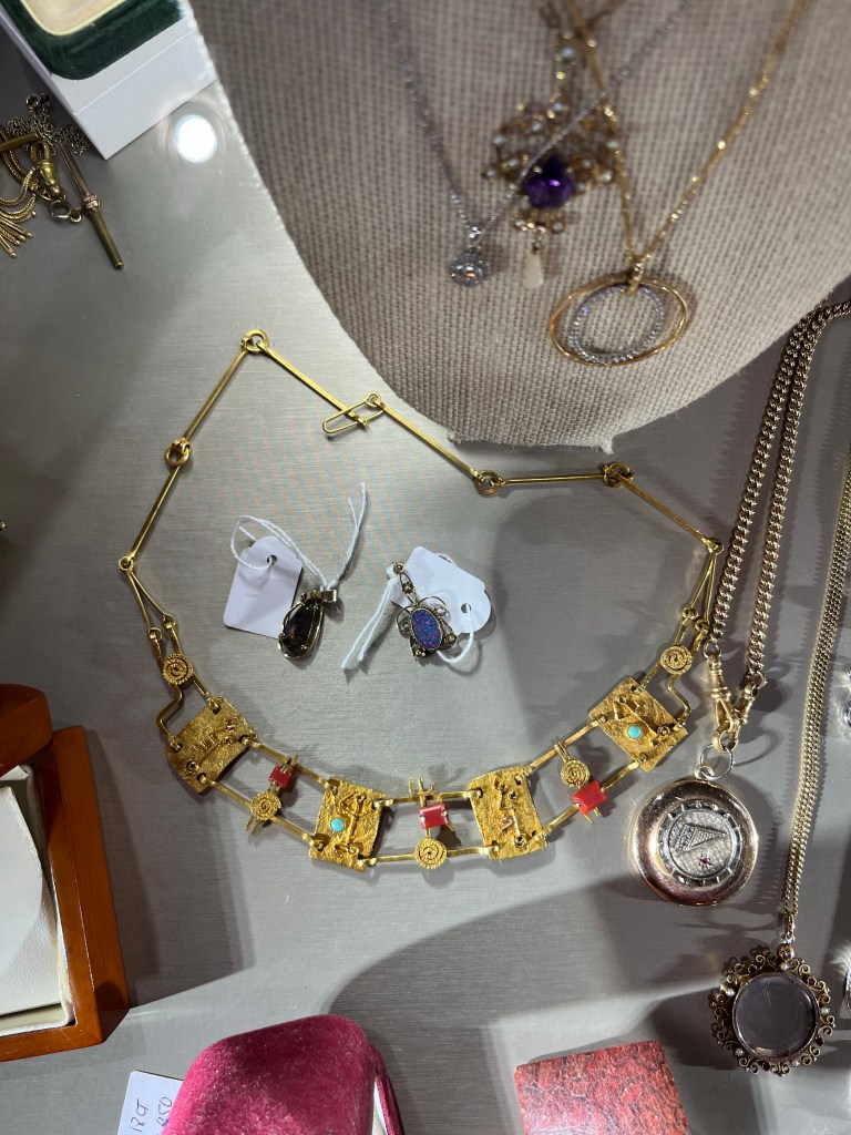 We leave Sydney around 11am. A late start because we want to eat breakfast before we go. Our first stop is a few op shops in Richmond. We end up buying a few goodies, some nice jewellery. On our way back to the car we pop into the antique shop. I fall in love with this 18kt gold necklace with carnelian and turquoise. It is a mere $6,800 and I am sorely tempted to buy it. It is worth half of that in material value. I want it so bad, but my better half tells me I am not earning any money and I don’t really get to spend $3k on a luxury. He is right if I had to sell it tomorrow quickly I can get hold back but I cannot really afford to lose that much money. Oh how nice is it to dream a little.