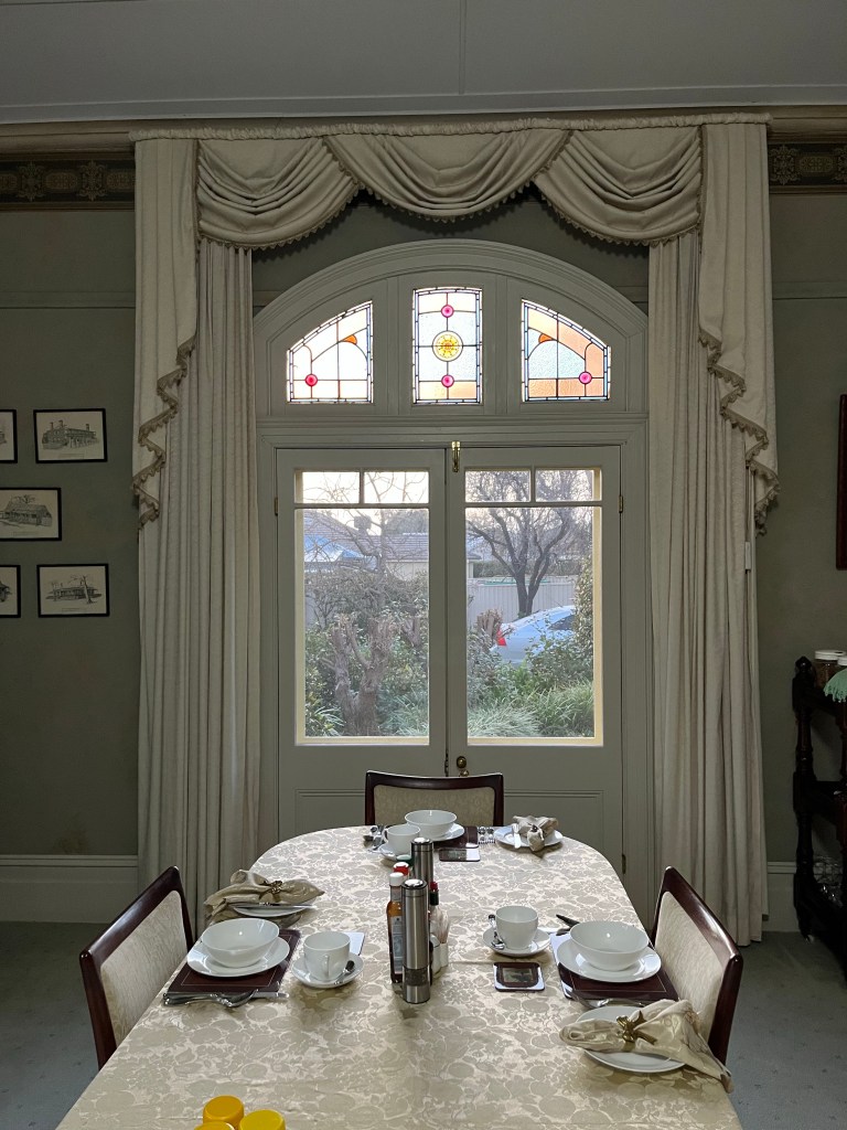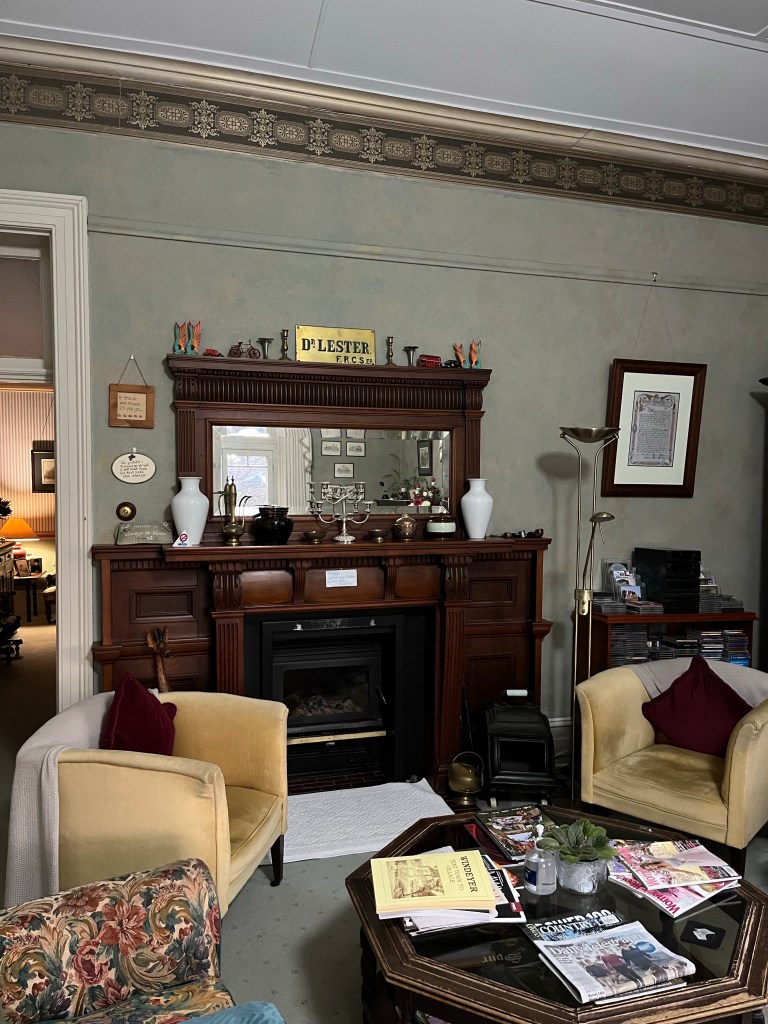 We arrive in the dark at a wonderful historic bed and breakfast. This is run by Joanne’s childhood friend Robbie. Robbie purchased it 23 years ago, but it was built by her great grandfather. Robbie’s g/pa, son of a chemist was the first surgeon to practice in Mudgee. In 1900 he commissioned the house to be built by architect Harold Hardwick. Over the years he added dentistry to his tool belt. Forgandenny house was run as a doctors/surgery/midwifery/dentistry. In 1924 his wife became ill and they headed back to Scotland to see family. They put a locum in place to manage the patients while they were gone. Dr Lester was 6 days late from the contract he signed with the locum. Unfortunately the fine print was missed and this meant Dr Lester was to sell the practice and the building. Dr Lester moved out to Sydney and 5 years later his wife Mary died. He went on to work on ships as a surgeon. In 1930 at 65 he died just as the ship reached Wellington Harbour. His descendants stayed on in Mudgee. 76 years of being out of the family Forgandenny House came up for auction and Robbie & Errol purchased the home. Amazingly some of the furniture and equipment from the days of Dr Lester were kept on a family farm. So a lot of those things came back to Forgandenny House.