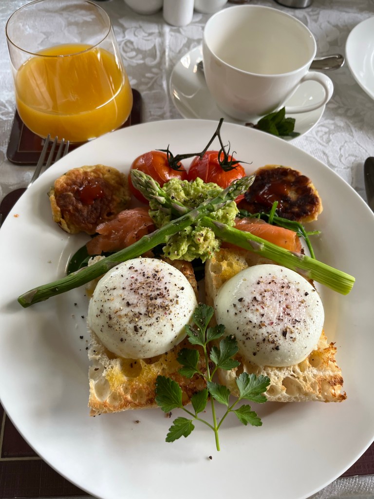 Saturday, our final big breakfast. The stay at Forgandenny House has been spectacular. Big hugs for Robbie as we leave.
