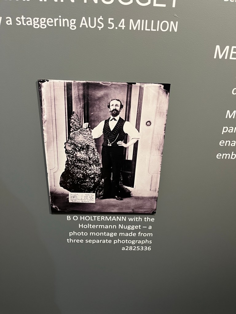 From there we head back to the cemetery as they told us where we can find Kaye & Lynne’s grandparents. We don’t spend that long this time and it is 1pm now. We make the trip to Gulgong for lunch and to visit the museums. Gulgong is a historic mining town. Nearly overnight it went from no one to 20,000 people. The famous Holtermann’s gold nugget was found here, the world’s largest specimen. 1.5m long and weighing 290kg, 93kg was gold the rest quartz. We went to the Holtermann Museum to see the photos taken by Beaufoy Merlin & Charles Bayliss. There are some 3,500 glass slides. They took a lot of these photos prior to Holtermann being their patron. Some of the slides are incredibly large. They documented the gold rush incredibly well. It is an incredibly interesting museum and I could write for several paragraphs but I won’t bore you.