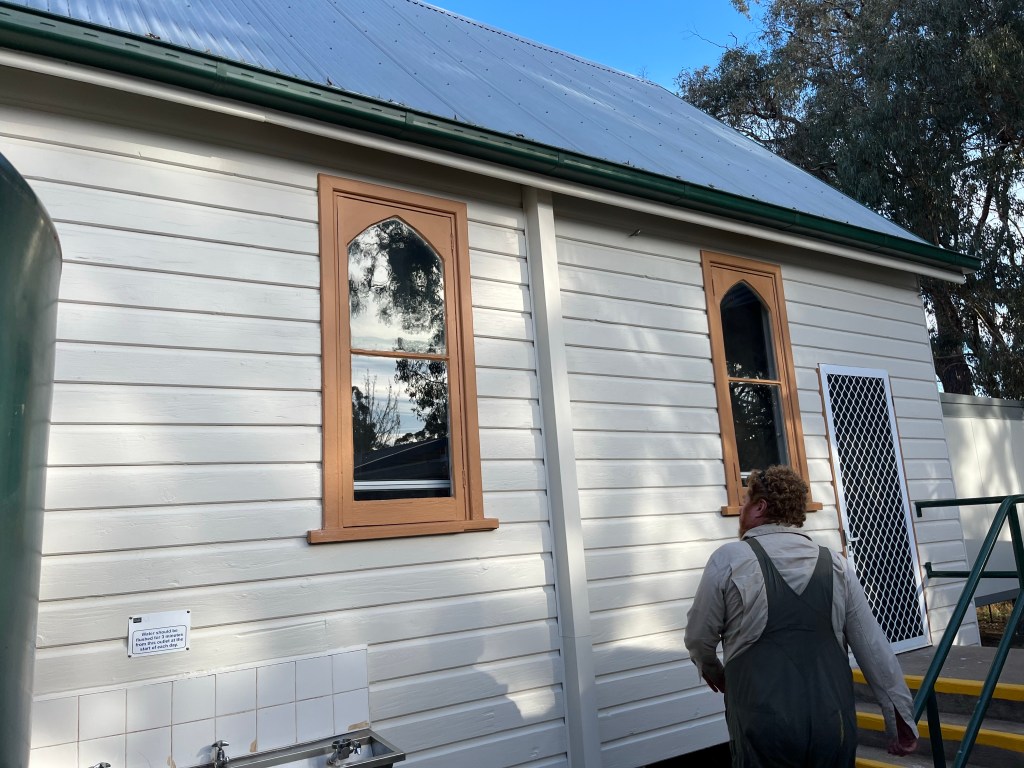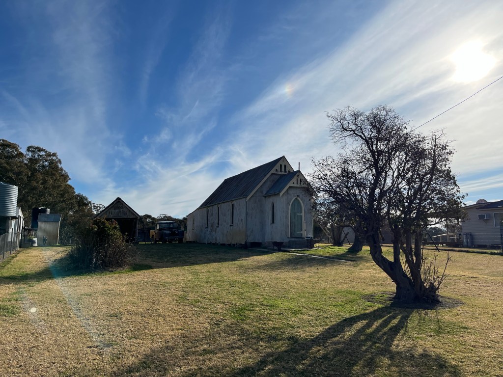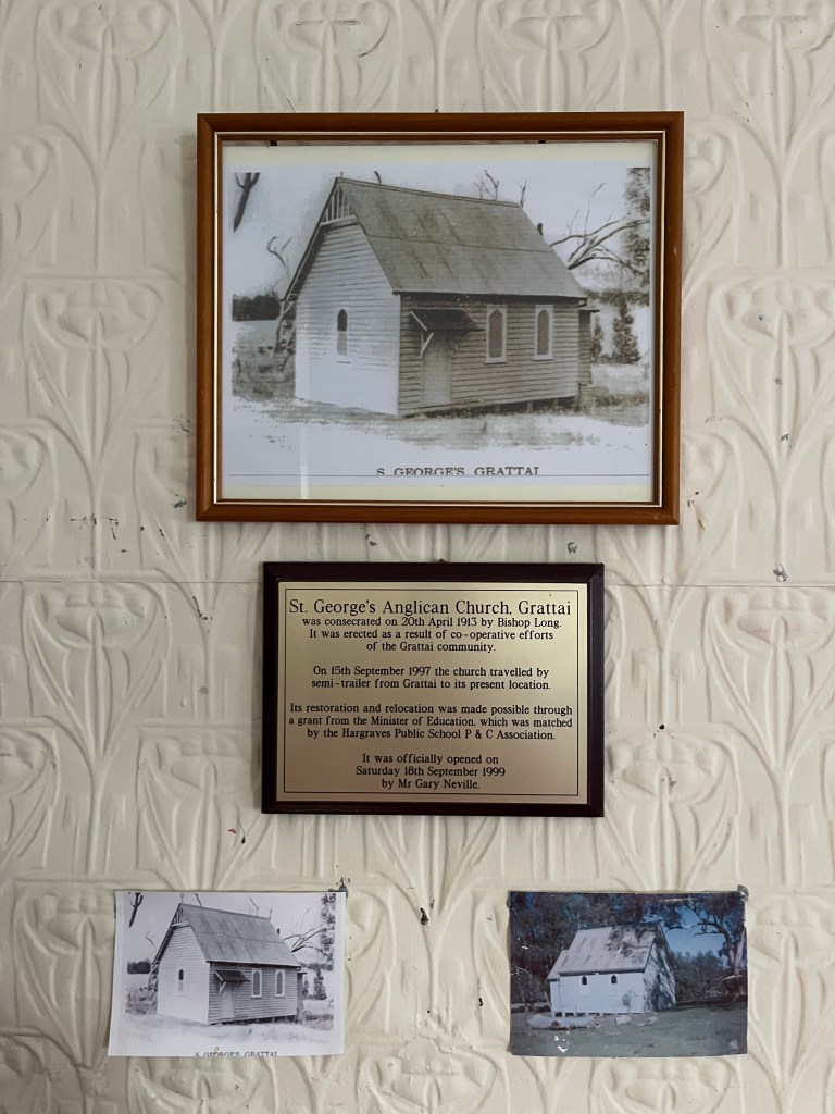 From Grattai we head to Hargraves in search of a church. This church was in Grattai but was moved in the 90s to Hargraves. Rowan’s great grandparents Edith & Harold got married in the church. They are the only known couple to be married in that church. We find the church it is right next to the school. We take lots of photos and ringing the church bell. We see an old sign and ring the Anglican Church number to see if we can see inside. Then Rowan pull out his phone and tells us it can’t be this church it doesn’t look like the one in the photo. Off we go in the car and find a second church. We look at it and Rowan and I think it can’t be that church. The neighbour comes out and asks us if she can help. We get chatting to Judy and she explains how she went to the church as a kid and it was definitely moved to back at the school. A little confused but we accepted her explanation. It wasn’t until we chatted for several minutes and came back to the subject that she realised we were talking about two different churches. Judy explained that the church is in the school grounds not next to the school, it has been turned into a home economics room/teachers lounge. Judy is president of the historical society in Hargraves, we are lucky to have run into her.