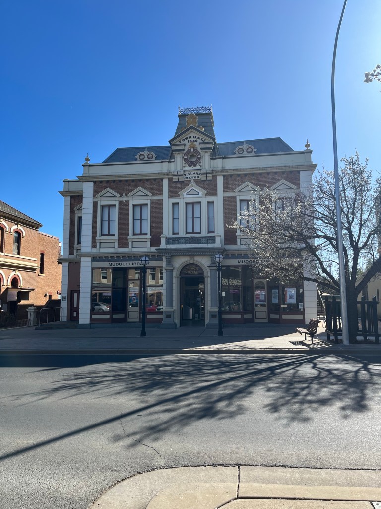 Friday – Back at the Mudgee Museum as soon as it opened. Unfortunately the genealogy lady wasn’t there but we had a nice man John help us find all sorts of files. We even found an original gold claim, unfortunately it ran out in 1973 so we were a bit late. It turns out the Lovetts line that is still in Mudgee are related to them. We dug out some good photos of the original plot of land in Grattai. The lovely John allowed us to go get the files scanned so we took them to the local print shop to be put on USB sticks. While we waited for that to happen, we ate lunch and checked out the town hall. This is now the local library but a long time ago it had the Richardson Jewellery store started by John Kaye Richardson which was started by Rowan’s great great grandfather. It was carried on by Rowan’s great grandparents and eventually sold it in the 70’s. I am not sure what year they moved from the town hall to the location across the street with the balcony.