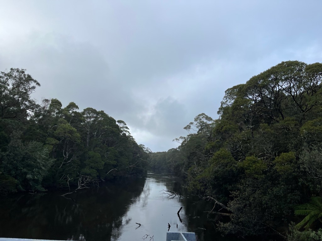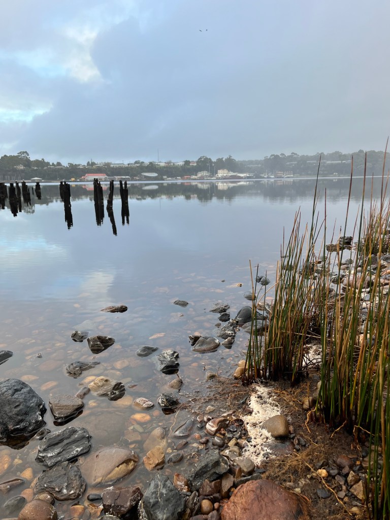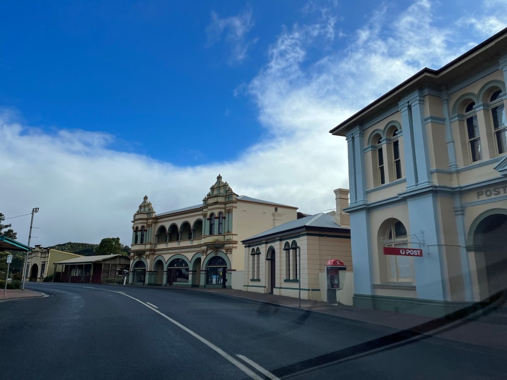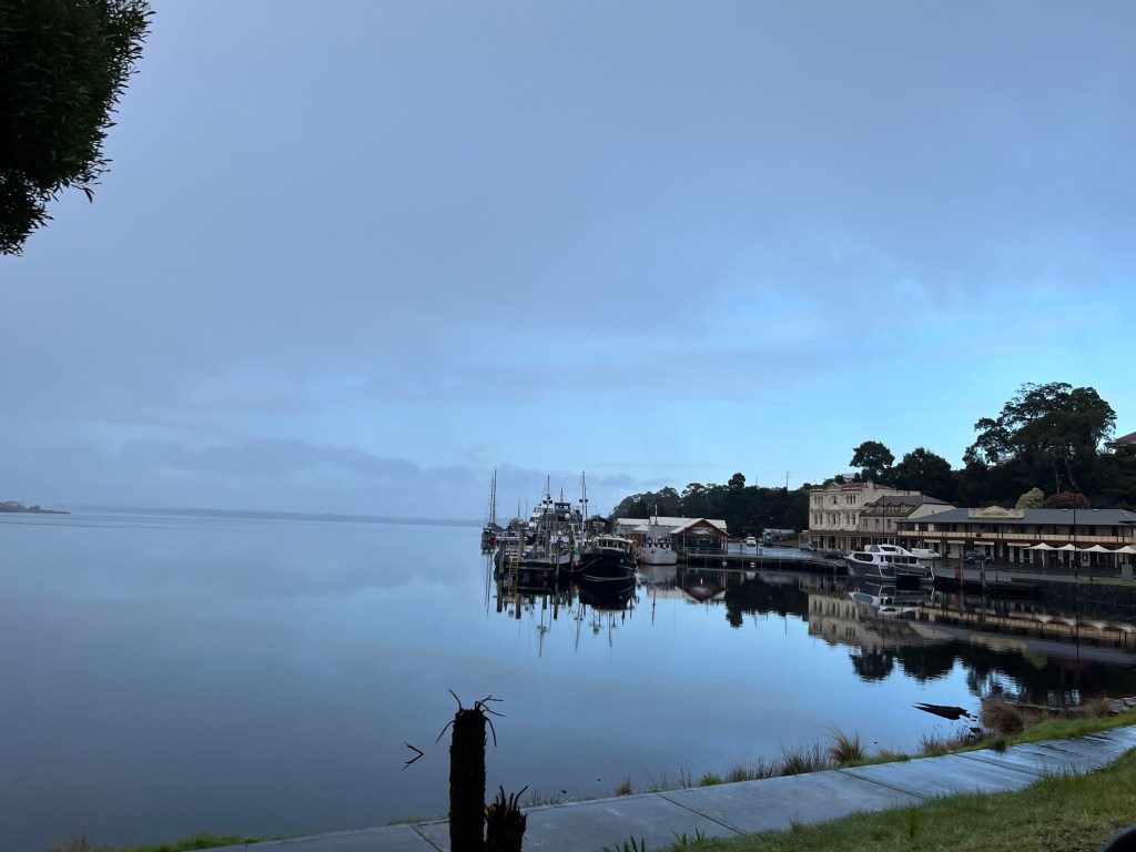 We all woke up fairly early with plans to be on the road at 7am. There is nothing here we need to stay for. Strahan is where I should have booked. We head there and it is stunning. The river is really wide here and it is like a lake. We take a quick tour of the town and find a good spot for coffee and eggs.