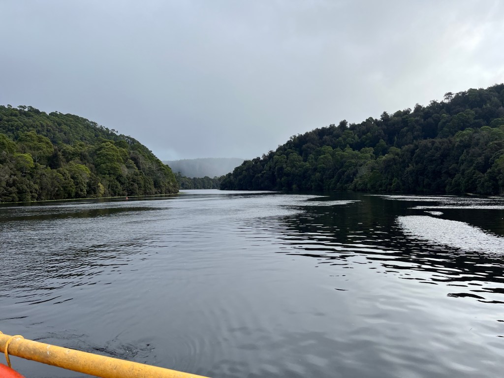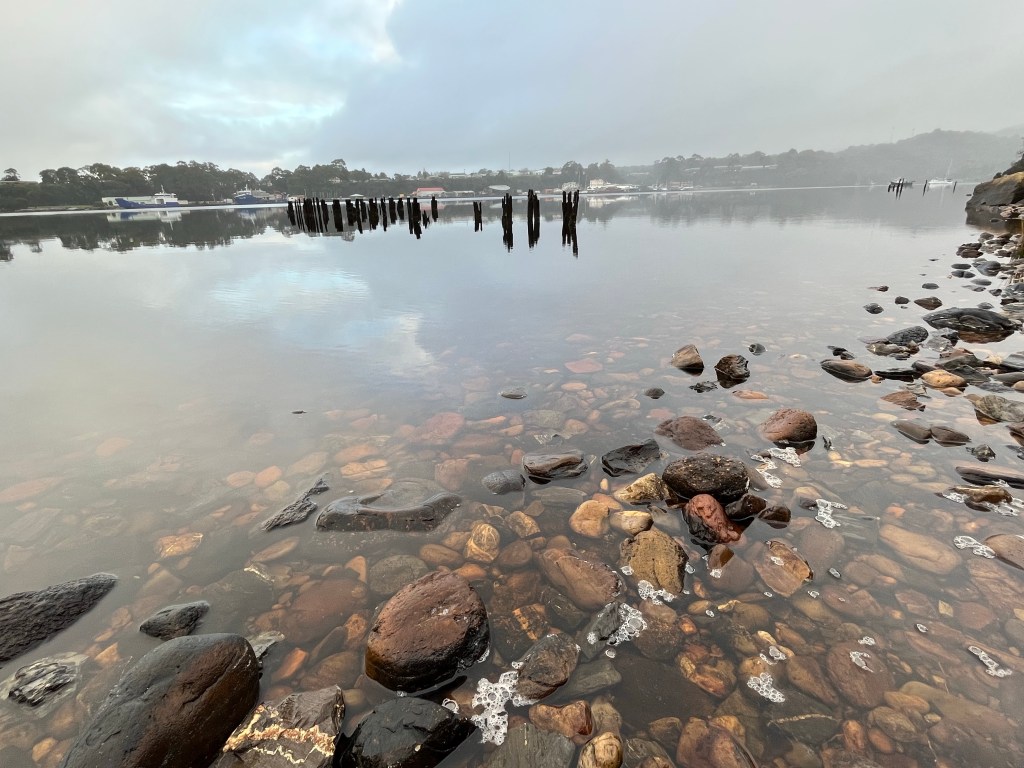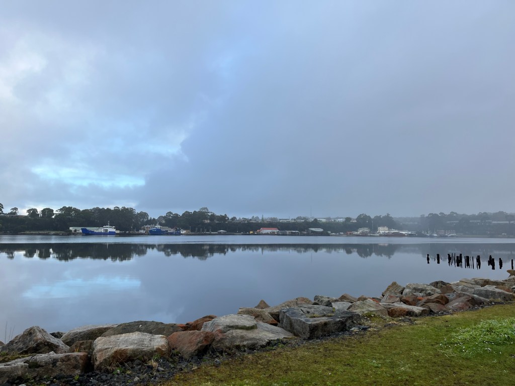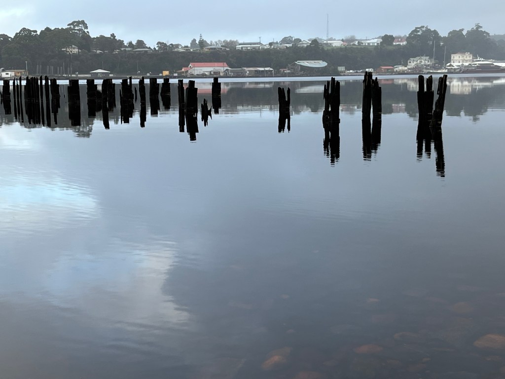 We all woke up fairly early with plans to be on the road at 7am. There is nothing here we need to stay for. Strahan is where I should have booked. We head there and it is stunning. The river is really wide here and it is like a lake. We take a quick tour of the town and find a good spot for coffee and eggs.