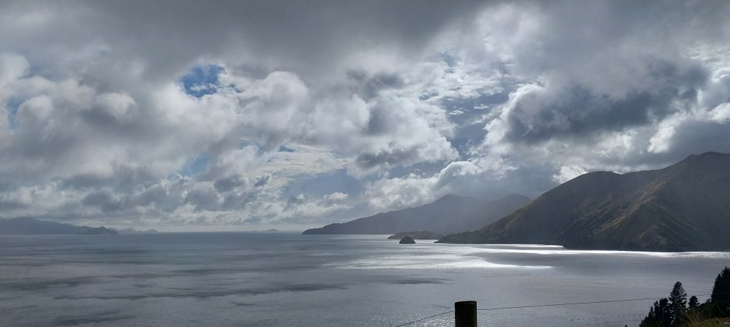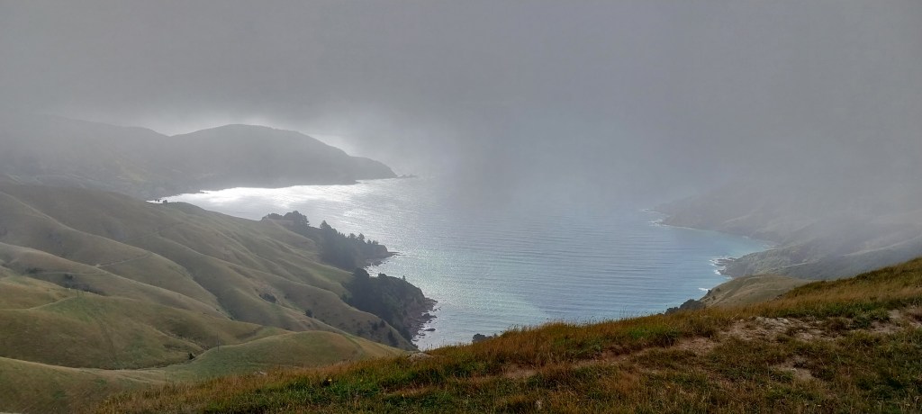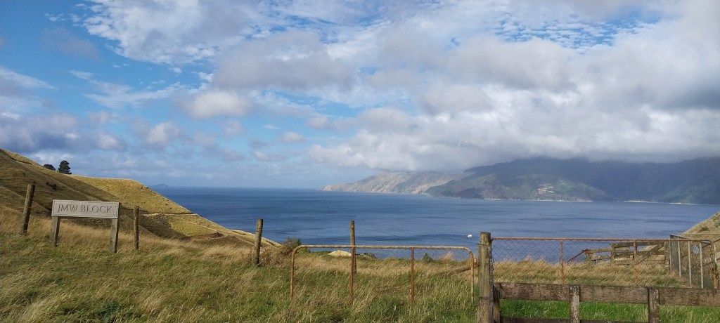 I have never been to French Pass before and I have always wanted to explore the area so when the suggestion was made I jumped to say yes. Rowan has been there a few times but only when sailing his yacht. The road is mostly tarmac which is more than we expected. We got high up in the clouds and the views were fantastic. The wind was gusty and we could tell we were in the sounds. Majority of the land is private so you can’t get down to the water edge. In Okiwi Bay is the first chance down at the water.