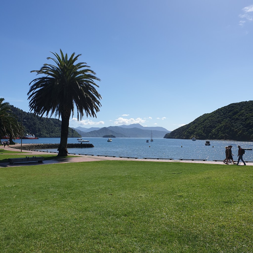 Oh we really are famous now haha. We chat to kill time it is a whole hour later before we get on the ferry. Finally on board it takes another hour before we set off. 2 hours late! I am glad I booked our holiday park. We have great long chats with Imogen she has done NOBO (North bound) to Waikanae and made the smart decision to turn around and walk back. North Island is not going to be doable for a long long time. The sea is not bad we go out the long way and swing back in so the passengers don’t get moved around as much. There are plenty of people feeling unwell but luckily the outside is open so we don’t have to see it or smell it.