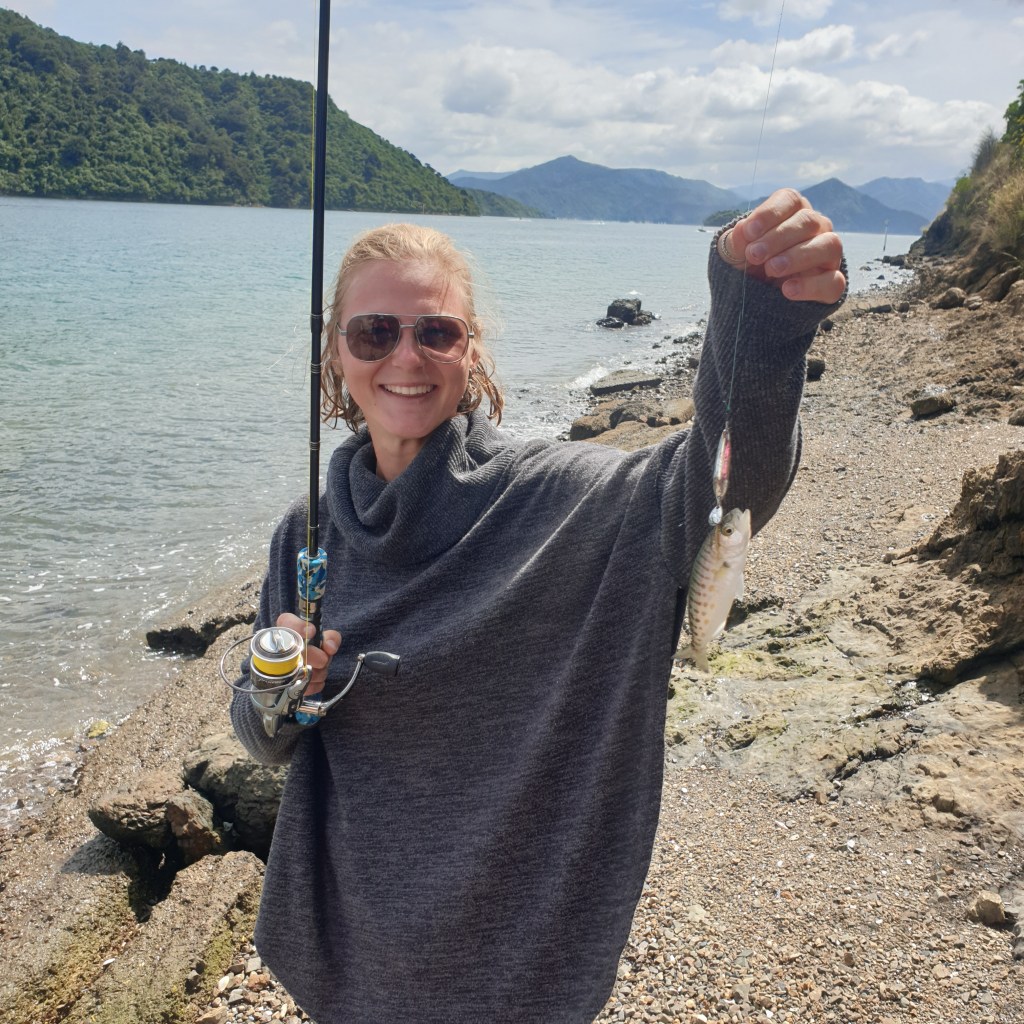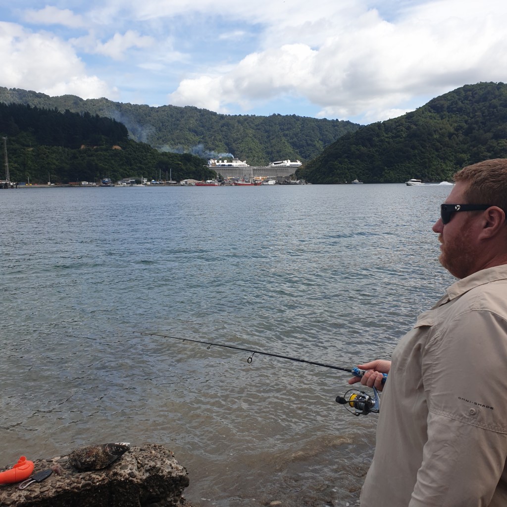 Tuesday, I had a lot of social media to catch up on for Eddy. So we didn’t leave the campground till 2pm. We didn’t venture far, just down to Karaka Point in Waikawa. We had a good swim and Rowan did some fishing. He got some mussels, and a much bigger Kahawai. There was a large stingray hanging out on the edge of the rocks. To