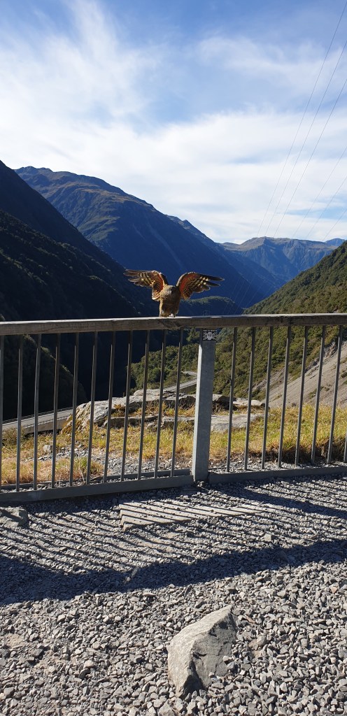Castle Hill has had some upgrades with a spot to picnic under now. Our main mission for today is to get Jenna up and close with a Kea. We get to the first spot we regularly see them and none are there. I think it is worth waiting for a bit and sure enough, one shows up, then another two. Jenna is really happy as now she has a lot of photos of them.