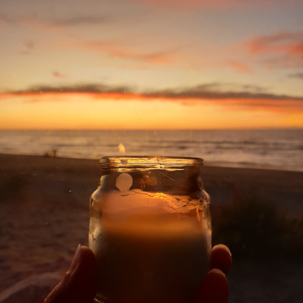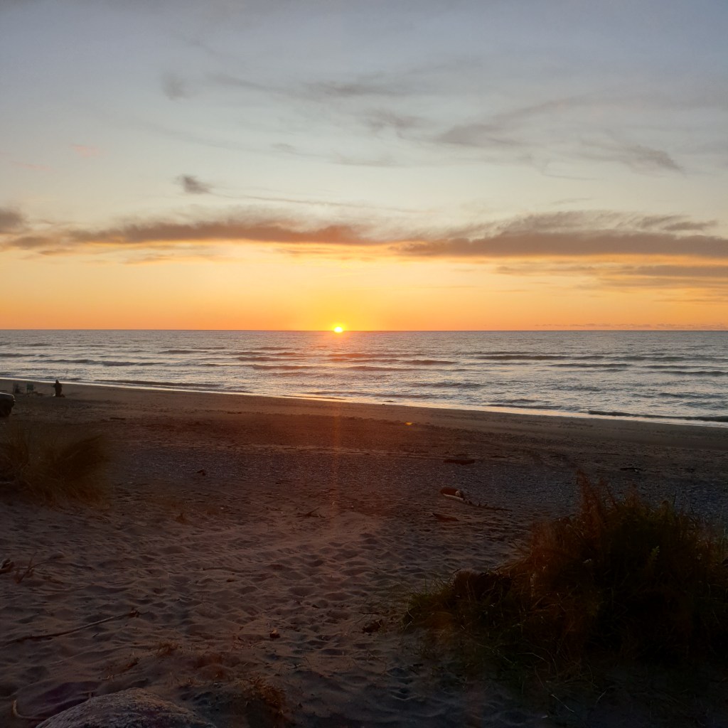 We make it to Kumara and Rowan would like to fossick the Serpentine Beach. I bail out after a bit and head back to the car. I call back my mum and the sun starts to set. By this time I am getting past being hungry. The sunset is stunning.