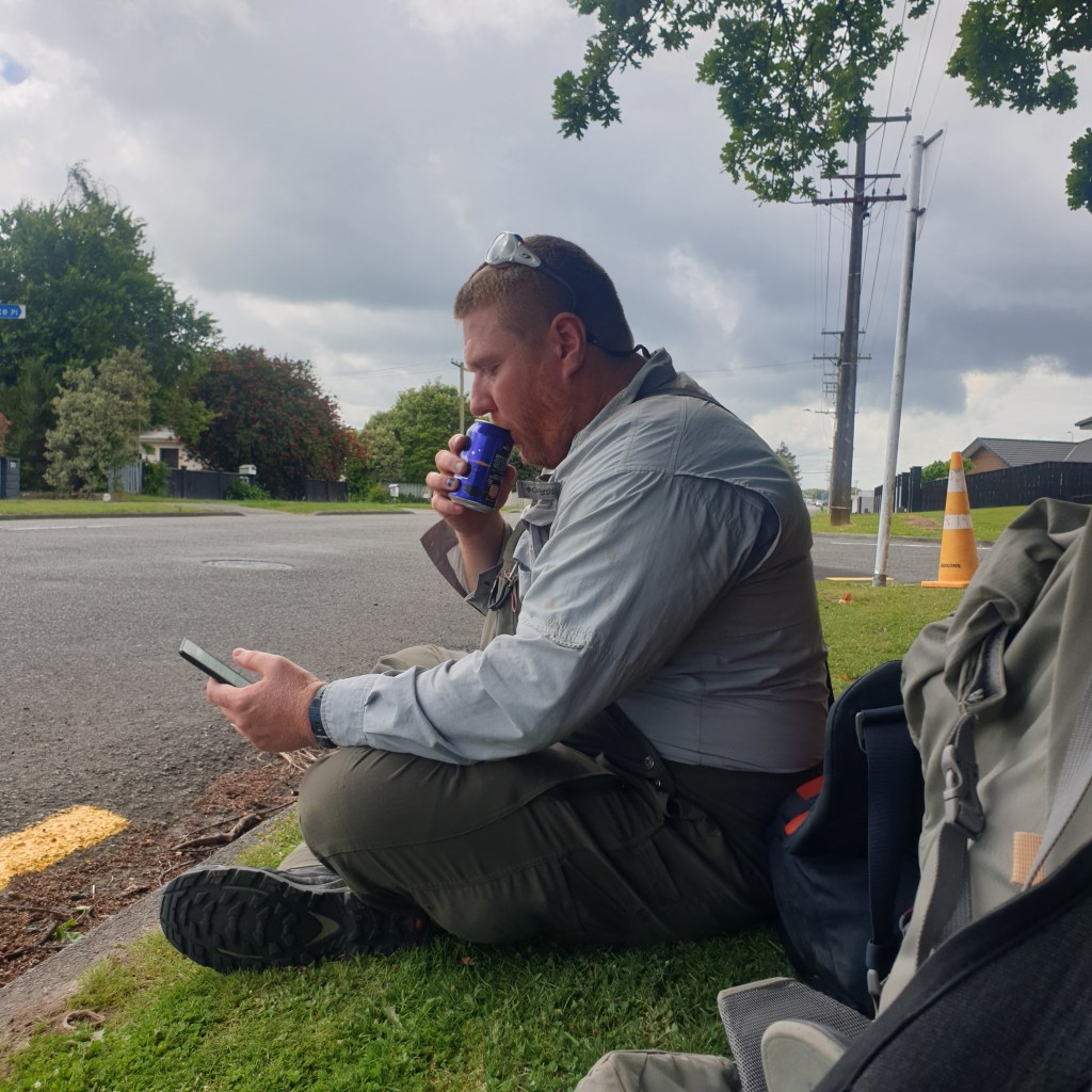 The day started a bit late, Rowan was hard to wake and hasn’t had a very good sleep in a while so I let him lay in a bit. We had a chat to Alan the cyclist before heading off. At cowboy time 10.10am we had our thumbs out, it was raining and we got soaked. We stayed there for 20min before walking further down the road. By the time we were walking through Manunui we started regretting leaving our warm dry tent. At this point we were pretty soaked the rain had come down harder. We decided to walk to the intersection that turns off to Turangi. Now we have been hitching for over an hour and feeling a bit deflated and hungry. We go to walk back to the servo and I say should we try get to Turangi where we will be on highway 1. We debate it for a bit and end up splitting up. Rowan on the turn off to Turangi and I am on the road to Whanganui. Bam, I have two rides offered within half an hour, one a single cab ute which obviously can’t take us both. The other who seemed a bit dodgy and could have fit us both in but only wanted to take me phew. We were chatting again about staying split up and Rowan said he will just sit down to look less big and scary. He had just taken off his pack and gone to sit down and boom, a nice man said he could take us to Owhango. Just over 2 hours to get our first ride of the day.