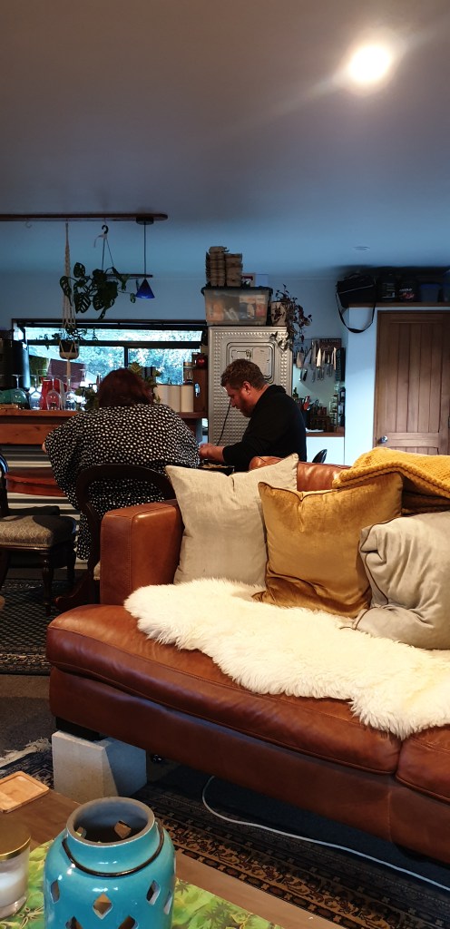 Dave a trail Angel comes and picks us up. I am very thankful as I am well worn out. He doesn’t live far off the track but I was done. Alex & Dave have a cool off grid set up. There is a caravan for us to sleep in, a flushing toilet and a hot shower. Dave & Alex Cook us up some Kai while we have a shower and a drink. Alex is an artist, it is really cool to see her studio. We eat and drink into the night, however we don’t last long. In bed by 8pm absolutely knackered, they say we can stay another night if we are needing a rest. Which I think is what we will do.