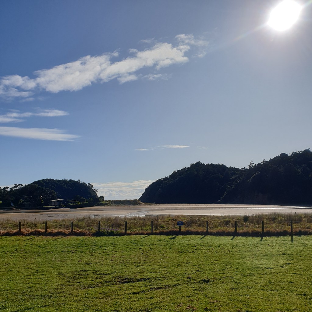 The day feels like it is taking forever, we finally get to the footbridge. This is the longest footbridge is the southern hemisphere and it is 395m long and was built in 1947. Well I don’t think many planks of wood have been changed in all that time, there were some dodgy bendy ones so I got Rowan to go first because he is heavier than me. We also see a Eagle ray stingray. We finally get to the local store and collapse. It closes at 5pm so we order some kai and have an early dinner. As we munch on our chips a couple of familiar faces show up. Kerry & Mark, trail angels from Mangawhai! We get talking and they are here looking for an alternative route for the track a between Helena Bay & here. There is currently a detour here as the track has been closed due to Kauri die back. The detour means you have a lot more kilometres and also a lot of road walking. So hopefully the new route they are trialling works out. All up today we walked 20km and it was a real push our bodies and our minds were struggling. Let’s see how tomorrow goes.