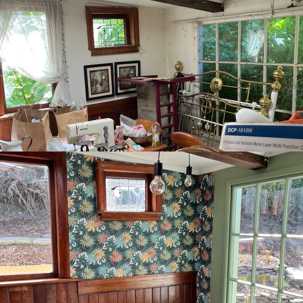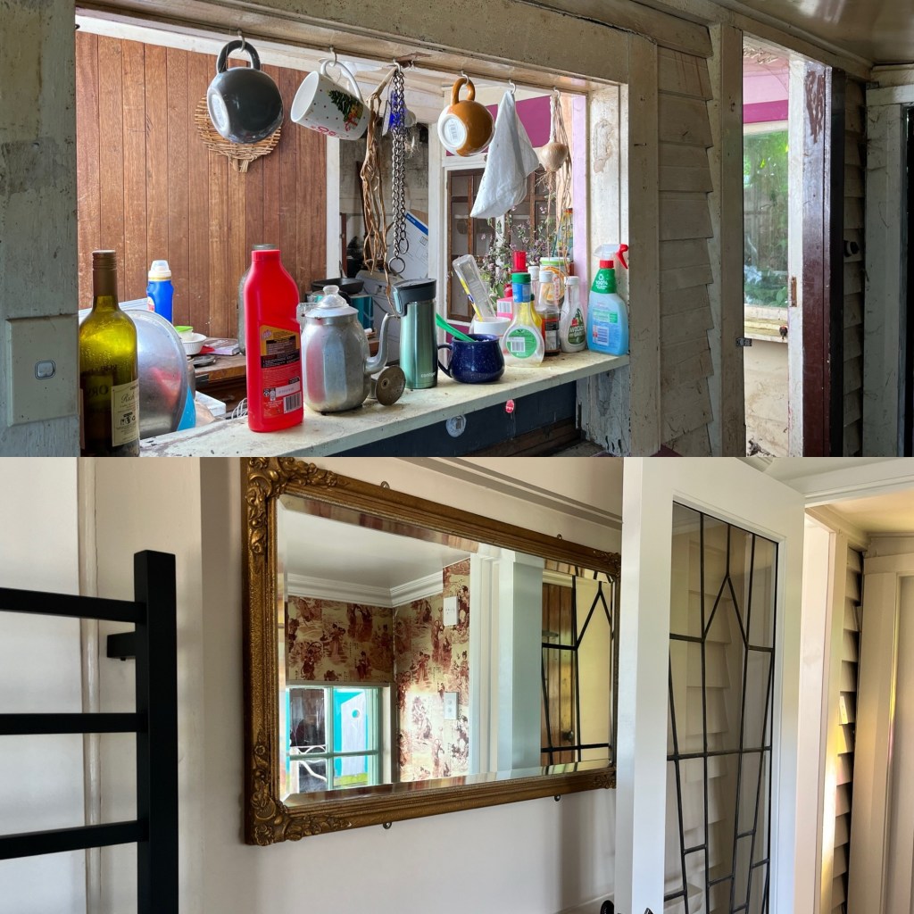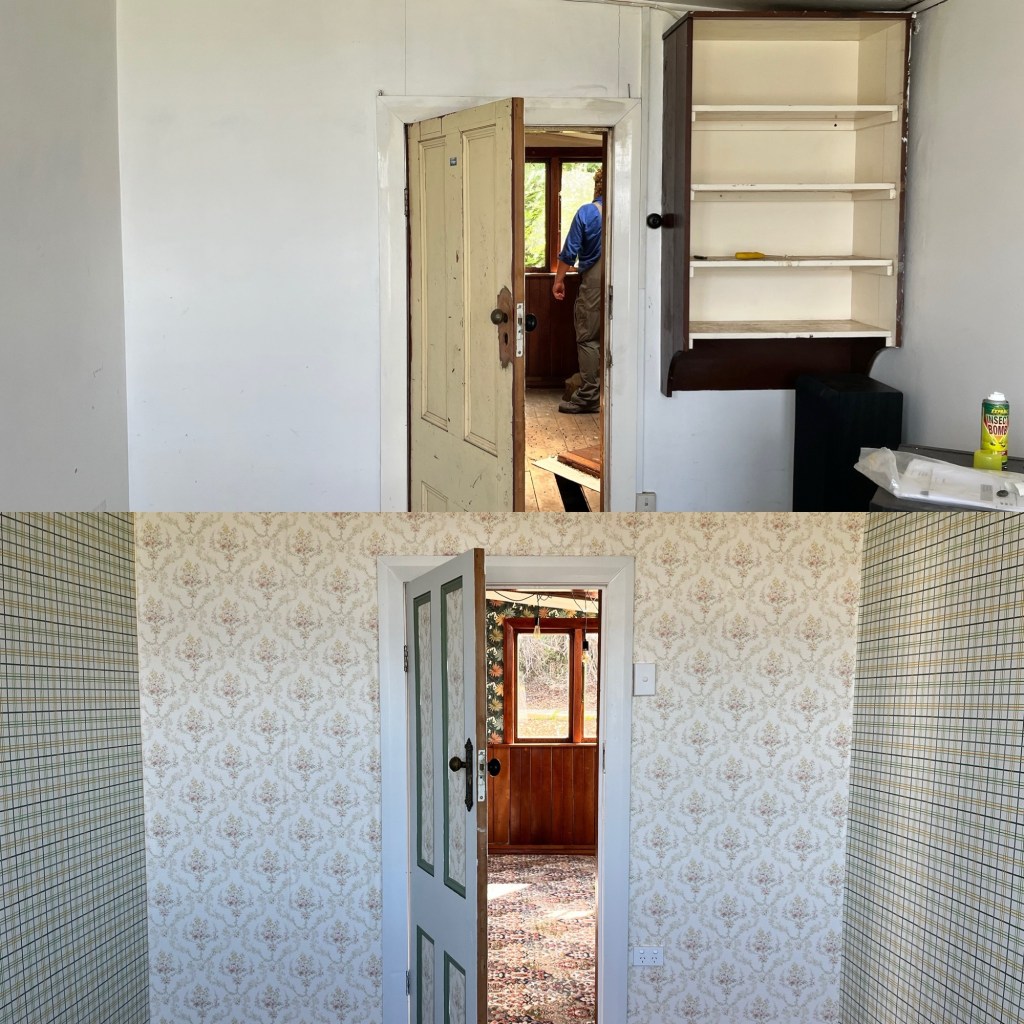 Thursday; Today is a lot more relaxed. I have a couple of small touch ups and then I sit down to start outlining the blurb for the house. Our friend Danny is back from Invercargill and he pops in to see the transformation and we end up having lunch out at a local cafe. We were hoping Lance would finish the carpet today but he will be back tomorrow to finish the main bedroom.