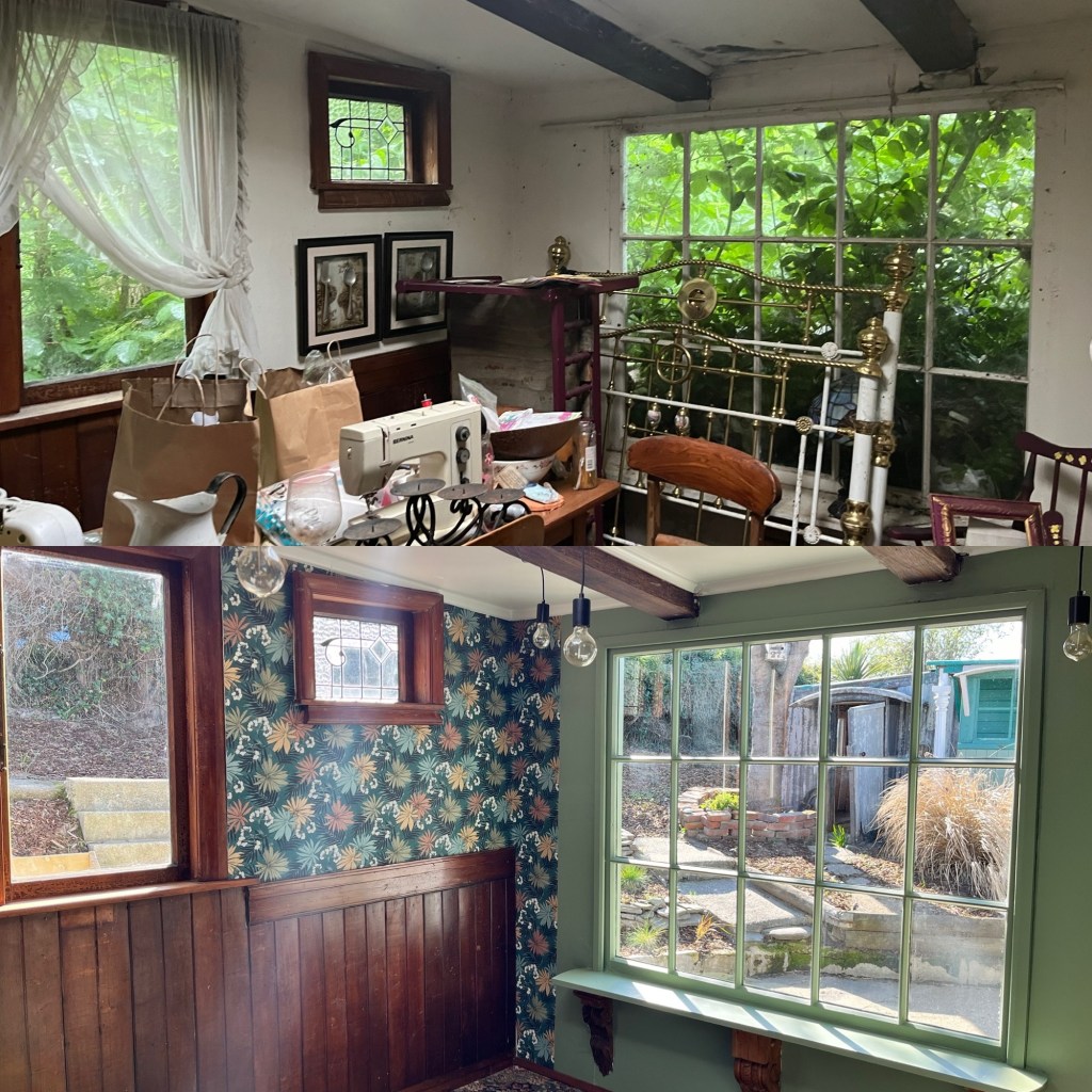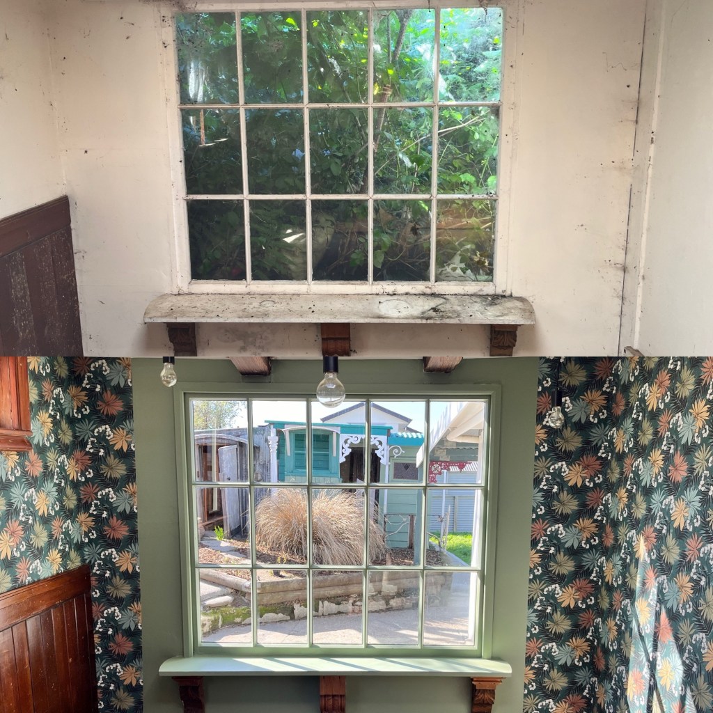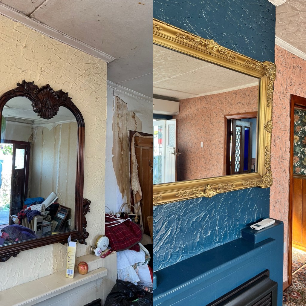 Thursday; Today is a lot more relaxed. I have a couple of small touch ups and then I sit down to start outlining the blurb for the house. Our friend Danny is back from Invercargill and he pops in to see the transformation and we end up having lunch out at a local cafe. We were hoping Lance would finish the carpet today but he will be back tomorrow to finish the main bedroom.