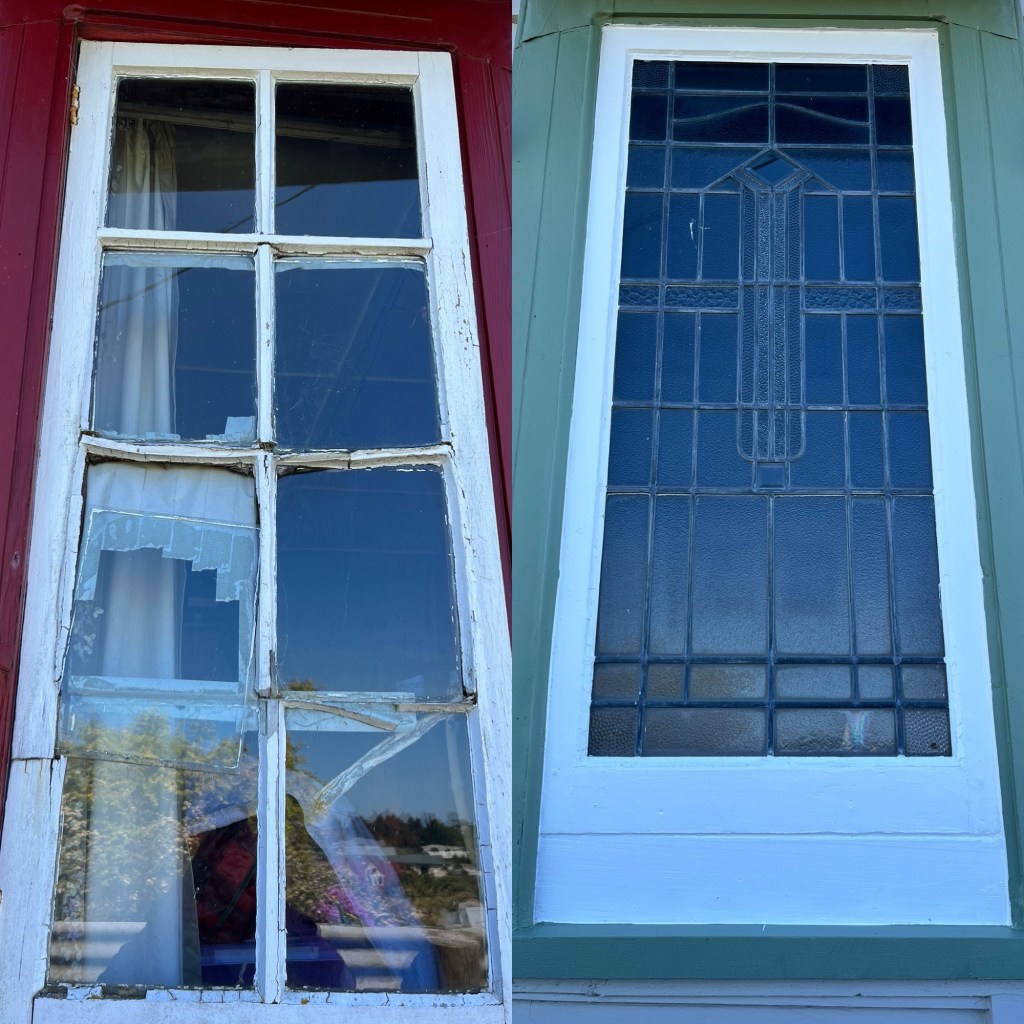 Sunday; We are taking it fairly easy. It is more of a prep day for the week. We come in a bit later and we leave early. Rowan brings my bike into Ōamaru to leave in the garage. This gets it out of the way while we are taking stuff back to Herbert. I get the undercoat done in the exit area and I finish gapping it. Rowan made a good headstart last night while I was getting the patches done. I got a coat of polyurethane on the copper and gold leaf. This will mean you can touch it without it coming off. I also got the seal and peel on the windows so I can give them paint tomorrow.