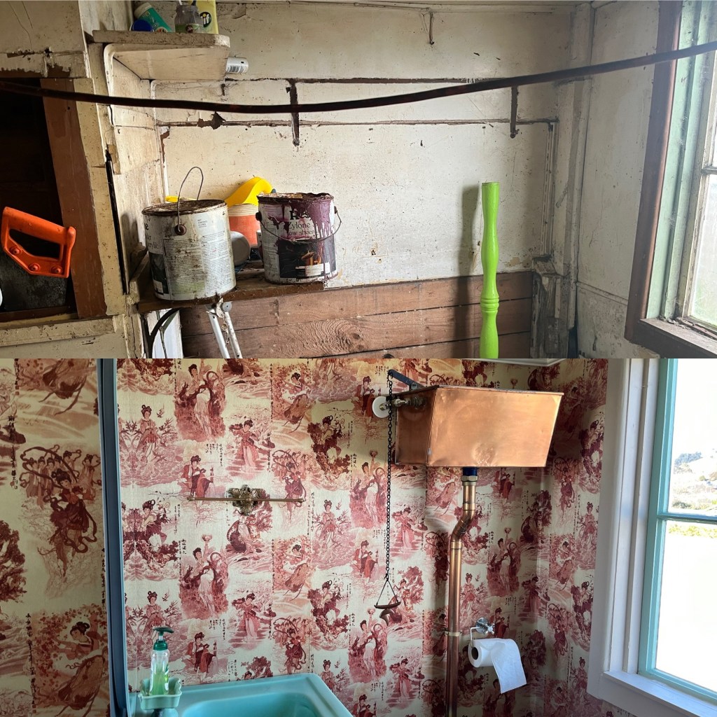Friday; An early start. Rowan and I head to Christchurch to pick up an engine for Noodly and a dishwasher for the house. While we were at Trade Depot picking up the dishwasher we ended up buying a cracked bath for $10. My plan is to take the drain out and add more holes and use it as a fancy white plant pot or as a raised garden. Either way it saved it from the landfill. The engine gets put on by a forklift and I wonder how we will get it off. That’s a tomorrow problem. We take our time coming back and op shop our way down to break up the drive. We take the dishwasher to Till St and sit it there. We can install it later. I painted the front doorstep. It will be ready for people to walk on for the open home.