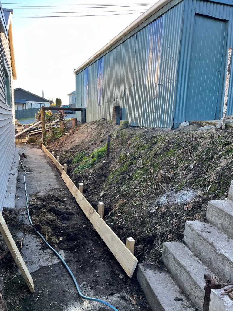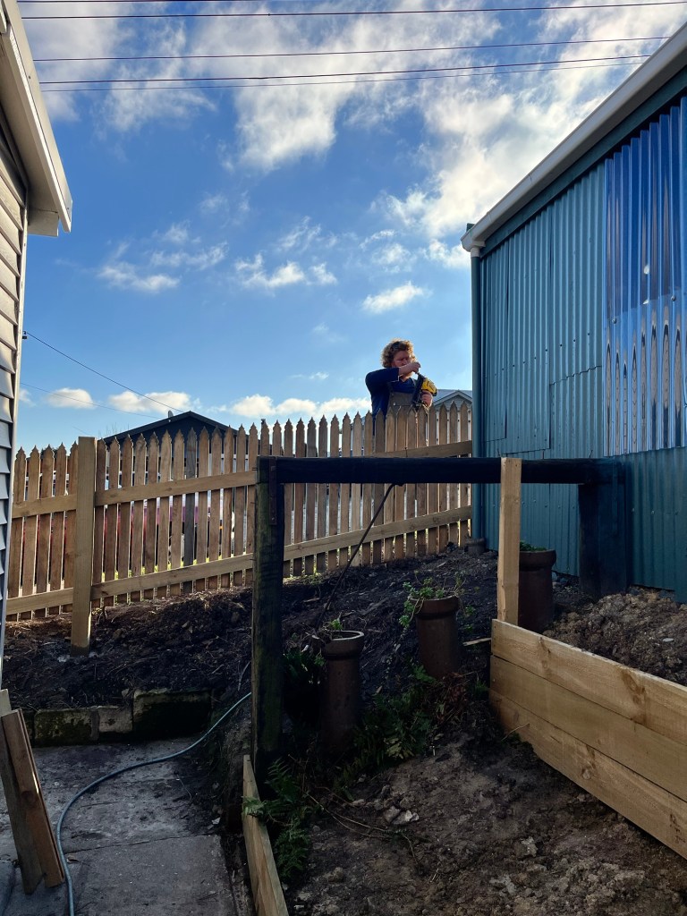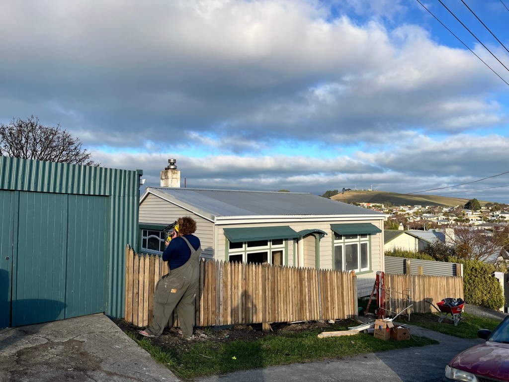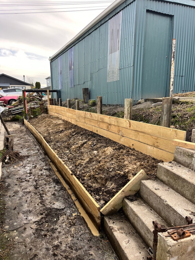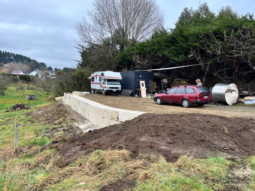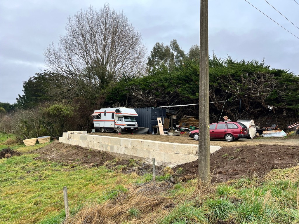 Friday; Today Rowan and I are splitting. He is in Palmerston this morning with Tama and I am at Till St with Jas. Tama is a week early and he came down to drop off the temporary fence. Chris also came back today to do some more work on the wall. It looks so much different now. It isn’t not finished but it is getting there! We have so much more room.