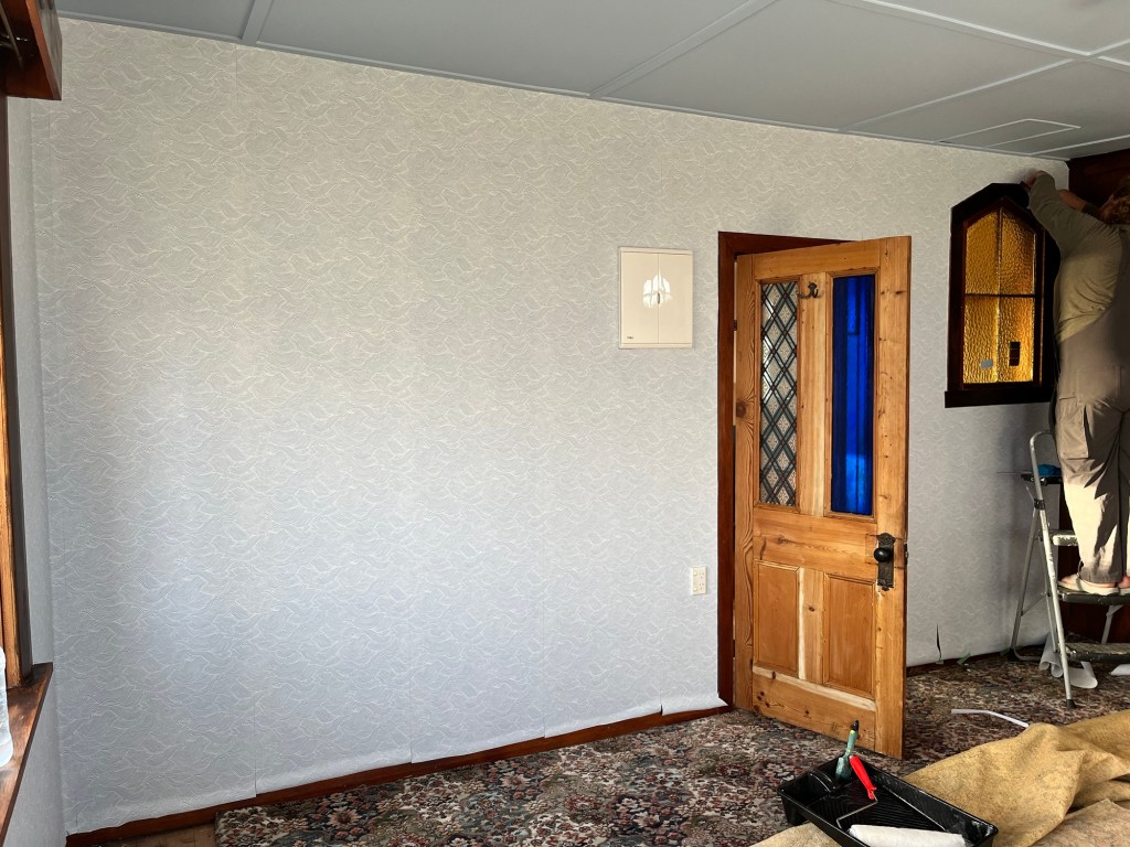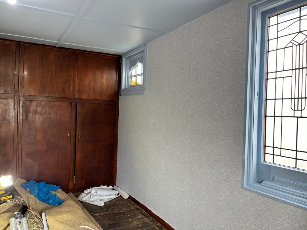 Saturday; A bit of a lazy morning. We don’t have a day off this week so we may as well have a bit more of a relaxed morning. Today’s mission is to get that wallpaper finished in the second bedroom. I have a bit of paint to do first. There is some door frames that I still haven’t got to so I have a bit of filler and paint to do. We get the wallpaper finished as it starts getting dark. Time to go home and do it all again tomorrow.
