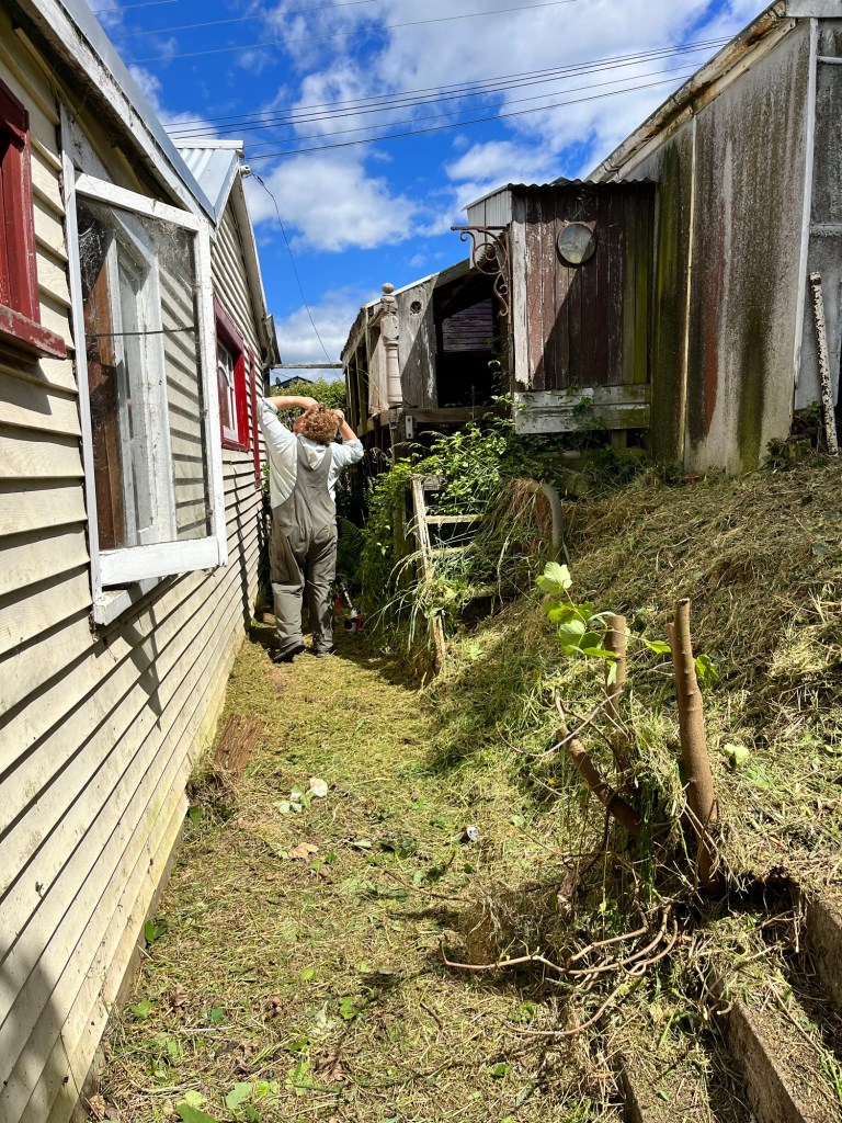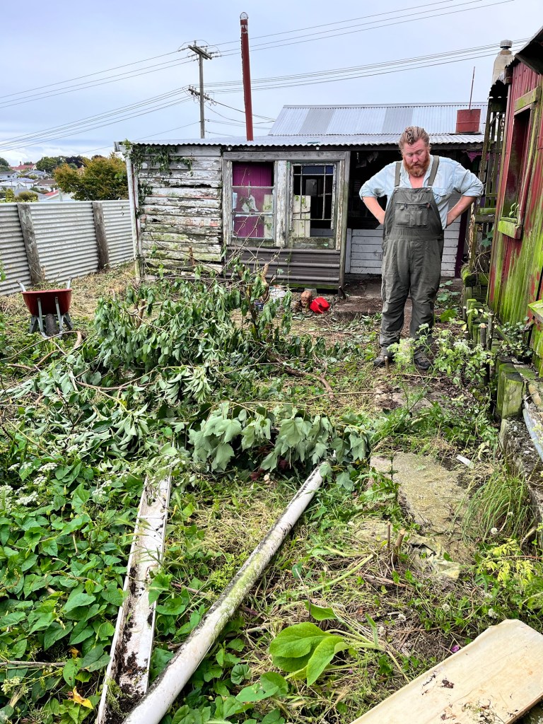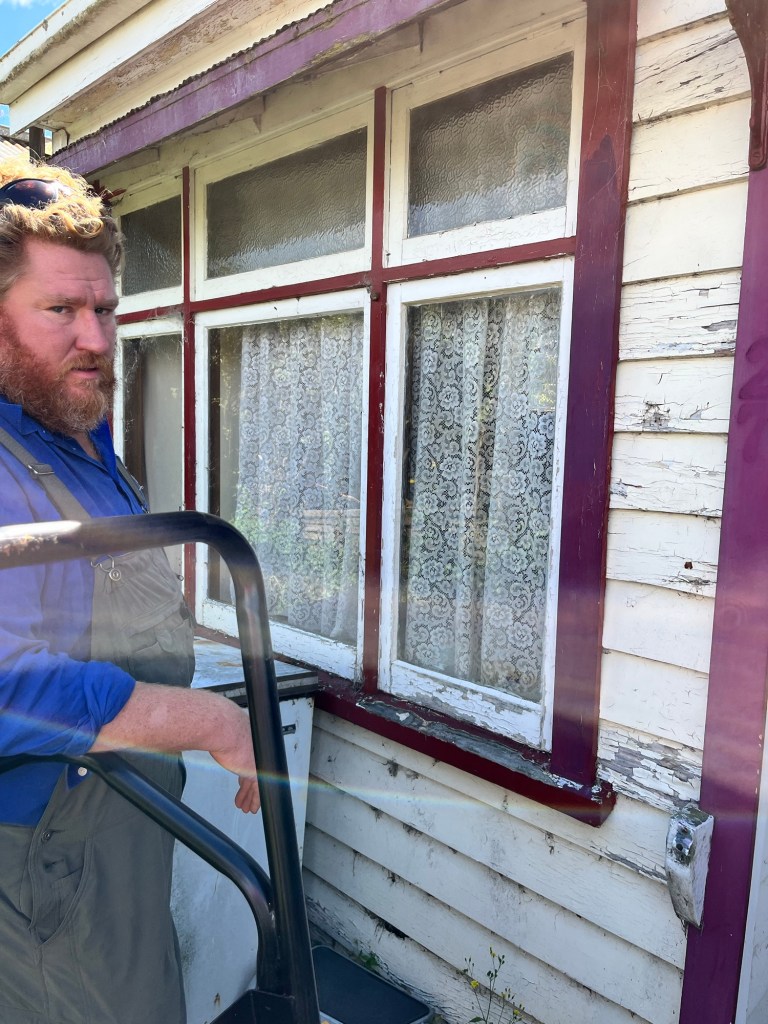 Tuesday; Feeling a bit one handed, I thought I would tackle cleaning the clawfoot bath up ready for painting. I started rust converting the feet then went on to the tub. As I attacked it with a wire brush and then started painting on the rust converter I noticed a label. Ooo fancy, this is a Royal Doulton bath, how cool. The lovely Leona comes around to chat about house layouts. I wanted to put an internal door into the toilet, making it an inside loo instead of outside. We ended up scrapping that idea. But now after another few weeks of feedback from everyone, looks like an exterior loo is not a good idea and we would be stupid not to change it. So we will add a toilet to the bathroom giving us two toilets. My poor Rowan has never dealt with extreme changes very well ends up a bit of a zombie for the rest of the day. He agrees it is for the best but it hits him like a ton of bricks. Cory is working on the shed fixing up any rotten bits and replacing them. Rowan is helping a bit. I also am a bit lost as what do we do next? Obviously plumbers and builders are now needed. I call around then end up sorting screws and tools out with my limited hand uses. That afternoon we contact the Otago Regional Council to see what we need to do for a resource consent for our earthworks. I point out that there are definitely homes in the area built close to the stormwater drain. Fingers crossed it isn’t as scary as our surveyor thinks it can be. The silliest thing is this is a pre application application, to determine if it is going to be easy or not. It will cost us for them to give us advice. The cheapest employee at the council is an admin at $150 per hour. It is a bit ridiculous, but it needs to be done. You may get a giggle out of our email subject line!