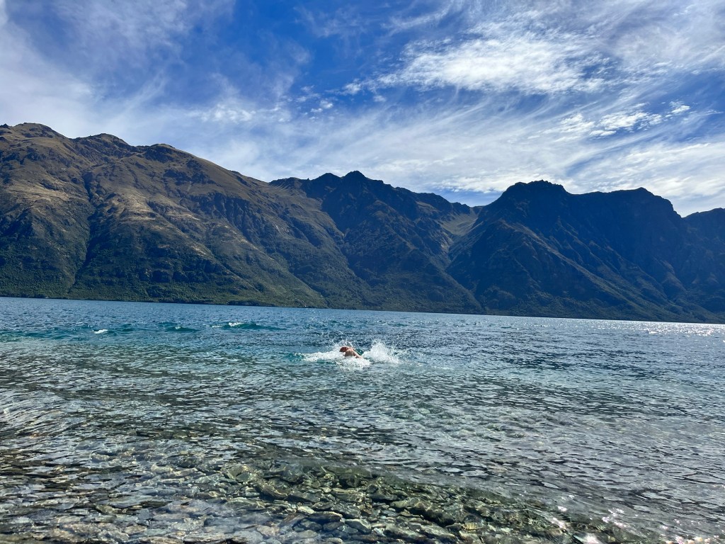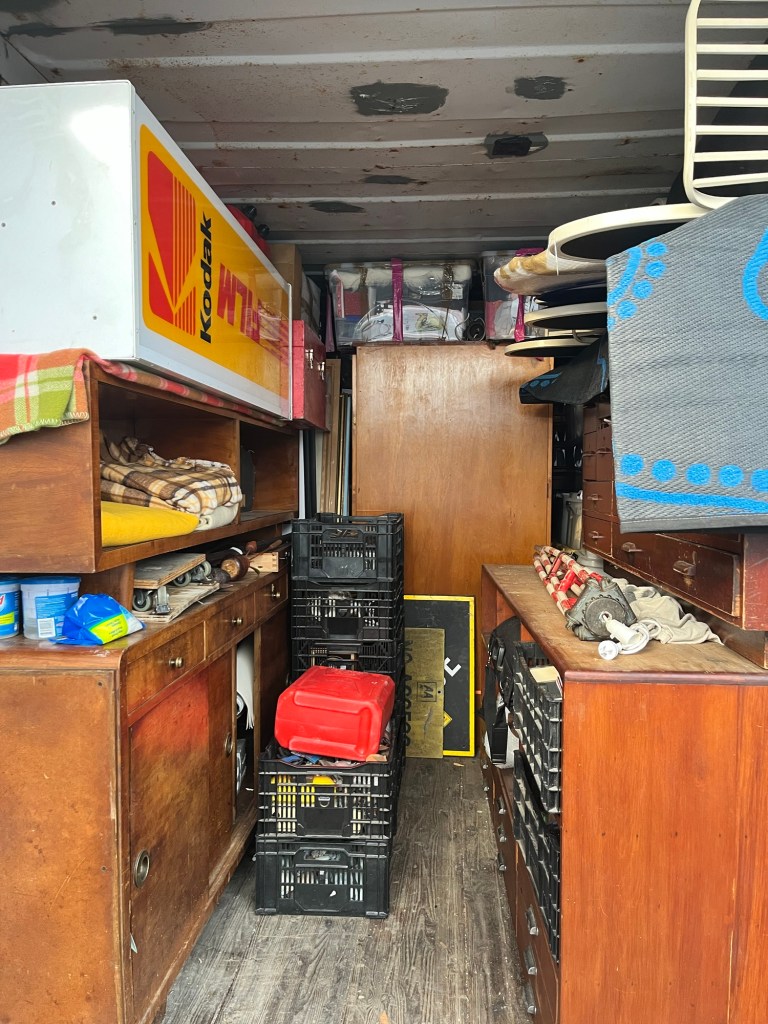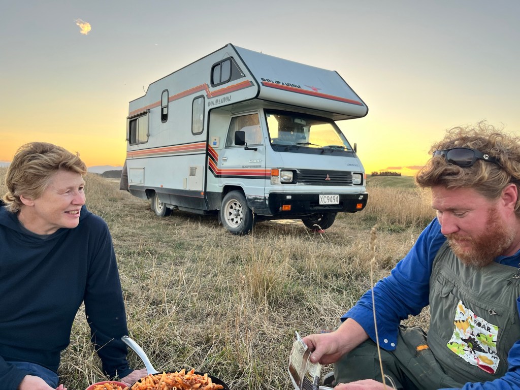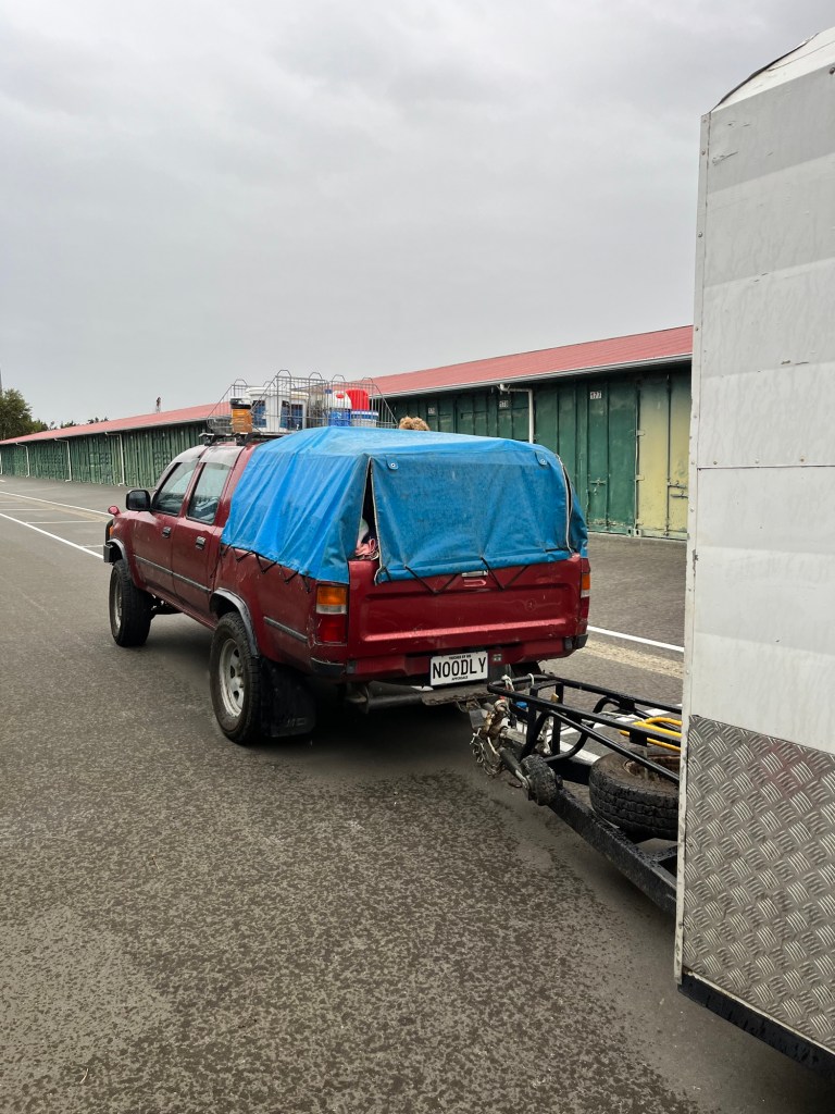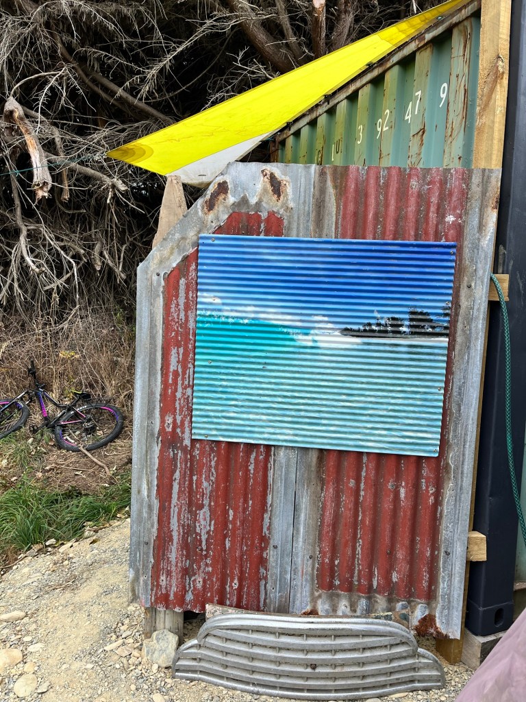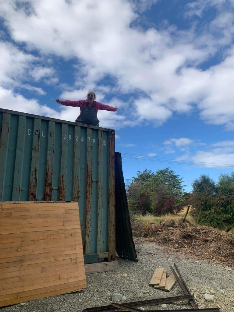 Thursday; The sun rises and puts on another good show. We are off to Herbert today and we hope to hear back from the Otago Regional Council (ORC). I want to get the painting completed. But also my Camele is so dirty, I can’t see out of the windows. When we fill up water at the hall, I give her a good scrub. Much better! Rowan gets our two concrete troughs and puts them in place. When I get back down I put a clear coat on the ute. Rowan waits for it to dry before putting the door cards back on. We hear from ORC and it looks like the application should be pretty simple. No need to inform iwi, shouldn’t need lots of fancy expensive consultants. Yay for good news! While I paint the container Rowan gets the twin axel trailer and fixes the wiring so it can pass a WOF. Today is so hot, I am having to paint quickly. Rowan gets the wheel bearings off before I get a chance to finish the first coat on the doors. Off to town to get some new bearings and some lunch. In town I tell Rowan let’s take our time, then the heat of the day may pass before I continue to paint. We owe Jimmy a lot of beer, he has a brand new shower we can use for Till Street. We load up the back with eight cases. Once back I get as far as putting the second coat on two sides before I run out of steam. “I am over it,” I say, beer and done. The container looks a lot tidier all painted up.