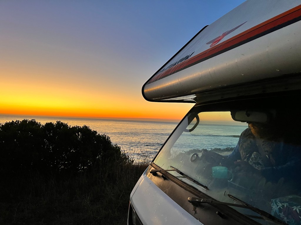 Wednesday; We are spending the day at Herbert and Cory is coming out. Cory has the task of clearing around the fence line which takes a long time. It probably hasn’t been done in a few decades. Rowan helps me take the door cards off the ute, so I can treat some rust. It didn’t come up in our last warrant but I noticed it. So it has been on my list for 6 months! I convert the rust do a small amount of bogging and then paint it all. I don’t get the last lot of clear coat on before the day ends. I also get a good start on the last three sides of the container. First up is rust converting them. There is quite a lot of rust in the door area, which I want done really well. I have a small amount of time to start painting. I get one coat on the rear. Rowan works on calling more plumbers and builders to help with Till. Everyone is so busy it really is hard to find tradies. We go up Mt Misery for the night and get a spectacular show! What a wonderful sunset.