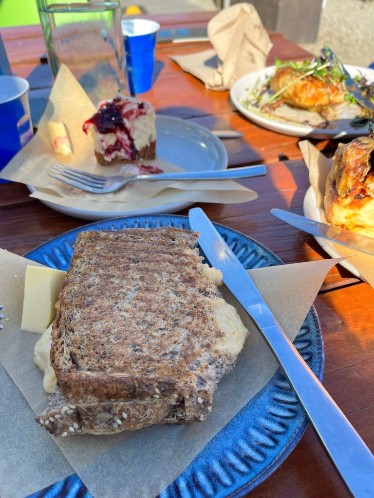 Saturday; Day off and I am in the container organising clothing. We both have so much clothing. More than necessary. I must have at least 20 items of merino alone. Today is not the day to get rid of it, I will just collate it and we will leave that mission for another time. We hadn’t planned food wise how we are having a day off so we jump on Rowan’s bike and head into town. We go to The Galley Cafe, which is on the waterfront. Haven’t been there before, being a Saturday it is pretty busy. From there we go to the supermarket for supplies for dinner. Tomorrow we will be getting stuck into paperwork. When we get back to Herbert I go for my ride and then we take Camele up Mt Misery. The container still needs more paint and eventually I would like to paint flowers on there, but let’s see if I can find the time. The rest of the day was exactly that, restful. I had a chance to hundreds and thousands Rowan’s feet!